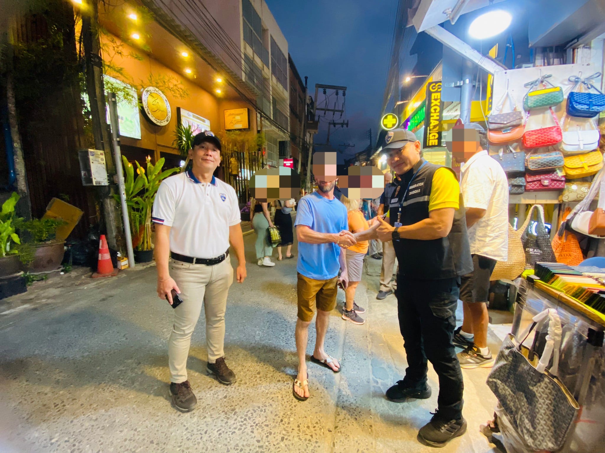 วันนี้ 23 ก.พ. 2567 เวลา 18.00 น. ด.ต.ชินศักดิ์ ชินฝั่น ผบ.หมู่ ตม.จว.สุราษฎร์ธานี,ด.ต.สุวิทย์ วงศ์จำปา ผบ.หมู่ ตม.จว.สุราษฎร์ธานี และ MR.LIM YU SIN สัญชาติ จีน ตม.อาสา ออกเดินเท้าตรวจตราดูแลความปลอดภัยแก่นักท่องเที่ยวและผู้ประกอบการ ตามคำสั่ง ตม.จว.สุราษฎร์ธานี ที่ 29/2567 ลง วันที่ 16 ก.พ. 2567 เรื่องสายตรวจเดินเท้าร่วมบูรณาการเพื่อชุมชนปลอดภัย ห้วง 16-29 ก.พ.2567 ตั้งแต่เวลา 18.00-20.30 น. ณ ชุมชนฟิชเชอร์แมน วิลเลจ ม.1 ต.บ่อผุด อ.เกาะสมุย จ.สุราษฎร์ธานี