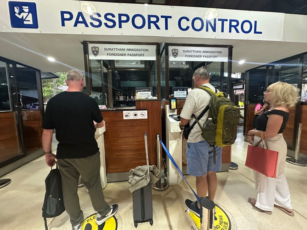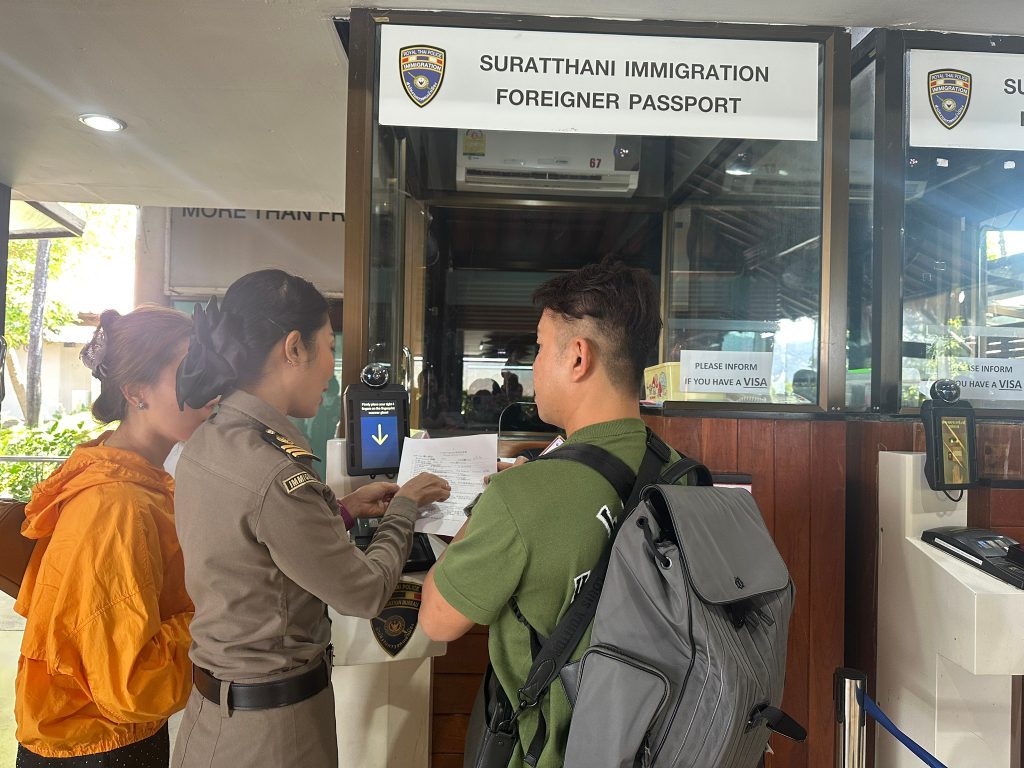 วันที่ 2 มี.ค.68 ร.ต.อ.ปิติพงษ์ เสนชู รอง สว.ตม.จว.สุราษฎร์ธานี ,ร.ต.อ.หญิง ภาวดี หวานทอง ,ร.ต.อ.หญิง จันทร์จิรา วิถี พร้อมด้วยเจ้าหน้าที่ ตม.จว.สุราษฎร์ธานี (ทอ.สมุย) ปฏิบัติหน้าที่ตรวจบุคคลและพาหนะทางอากาศ, Overstay, Visa on arrival พร้อมดูแล ช่วยเหลือ อำนวยความสะดวกและความเรียบร้อยในแถวระหว่างรอเข้าใช้บริการให้กับผู้โดยสารที่เดินทางเข้า-ออก ทางอากาศในเขตพื้นที่รับผิดชอบประจำสนามบินสมุย อ.เกาะสมุย จว.สุราษฎร์ธานี