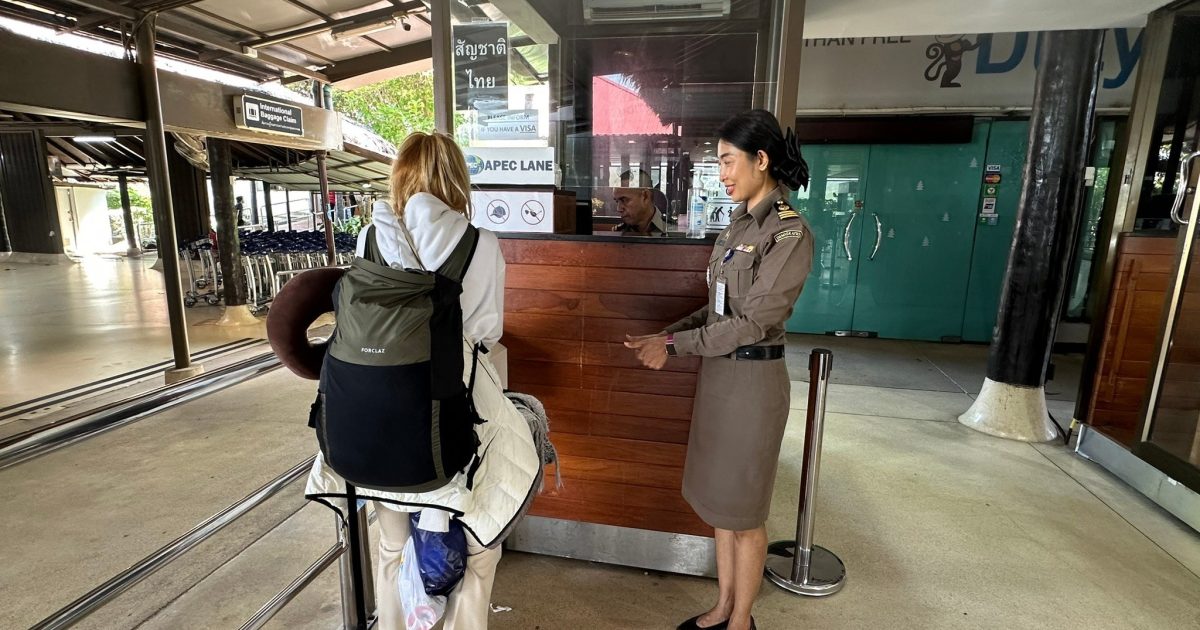 วันที่ 2 มี.ค.68 ร.ต.อ.ปิติพงษ์ เสนชู รอง สว.ตม.จว.สุราษฎร์ธานี ,ร.ต.อ.หญิง ภาวดี หวานทอง ,ร.ต.อ.หญิง จันทร์จิรา วิถี พร้อมด้วยเจ้าหน้าที่ ตม.จว.สุราษฎร์ธานี (ทอ.สมุย) ปฏิบัติหน้าที่ตรวจบุคคลและพาหนะทางอากาศ, Overstay, Visa on arrival พร้อมดูแล ช่วยเหลือ อำนวยความสะดวกและความเรียบร้อยในแถวระหว่างรอเข้าใช้บริการให้กับผู้โดยสารที่เดินทางเข้า-ออก ทางอากาศในเขตพื้นที่รับผิดชอบประจำสนามบินสมุย อ.เกาะสมุย จว.สุราษฎร์ธานี