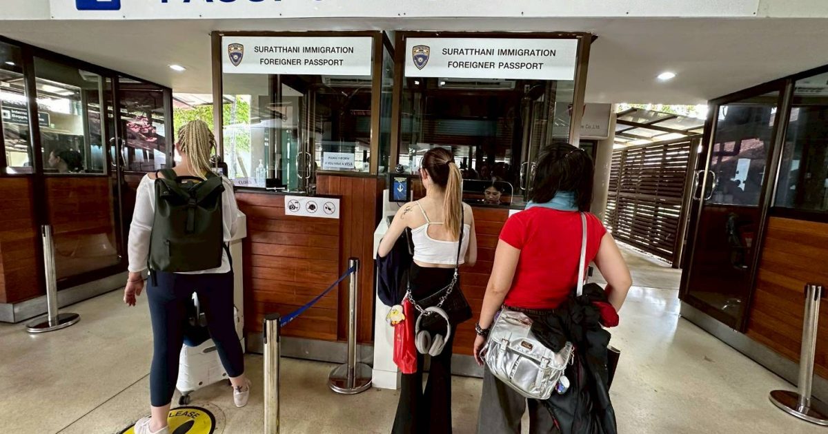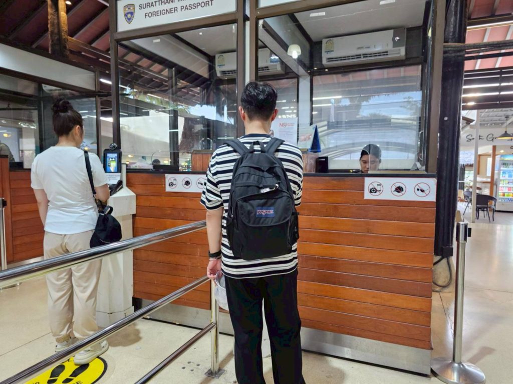 นที่ 19 เม.ย.68 ร.ต.อ.หญิง ภาวดี หวานทอง ,ร.ต.อ.ธฤติพัฒน์ สมมะลวน,ร.ต.อ.หญิง จันทร์จิรา วิถี รอง สว.ตม. จว.สุราษฎร์ธานี พร้อมด้วยเจ้าหน้าที่ ตม.จว. สุราษฎร์ธานี (ทอ.สมุย) ปฏิบัติหน้าที่ตรวจบุุคคลและพาหนะทางอากาศ, Overstay, Visa on arrival พร้อมดูแล ช่วยเหลือ อำนวยความสะดวกและความเรียบร้อยในแถวระหว่างรอเข้าใช้บริการให้กับผู้โดยสารที่เดินทางเข้า-ออก ทางอากาศในเขตพื้นที่รับผิดชอบประจำสนามบินสมุย อ.เกาะสมุย จว.สุราษฎร์ธานี
