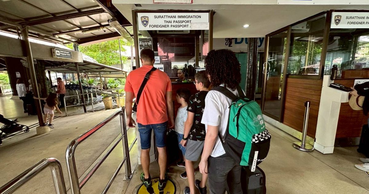 วันที่ 18 เม.ย.68 ร.ต.อ.หญิง ภาวดี หวานทอง ,ร.ต.อ.ธฤติพัฒน์ สมมะลวน,ร.ต.อ.หญิง จันทร์จิรา วิถี รอง สว.ตม. จว.สุราษฎร์ธานี พร้อมด้วยเจ้าหน้าที่ ตม.จว. สุราษฎร์ธานี (ทอ.สมุย) ปฏิบัติหน้าที่ตรวจบุุคคลและพาหนะทางอากาศ, Overstay, Visa on arrival พร้อมดูแล ช่วยเหลือ อำนวยความสะดวกและความเรียบร้อยในแถวระหว่างรอเข้าใช้บริการให้กับผู้โดยสารที่เดินทางเข้า-ออก ทางอากาศในเขตพื้นที่รับผิดชอบประจำสนามบินสมุย อ.เกาะสมุย จว.สุราษฎร์ธานี