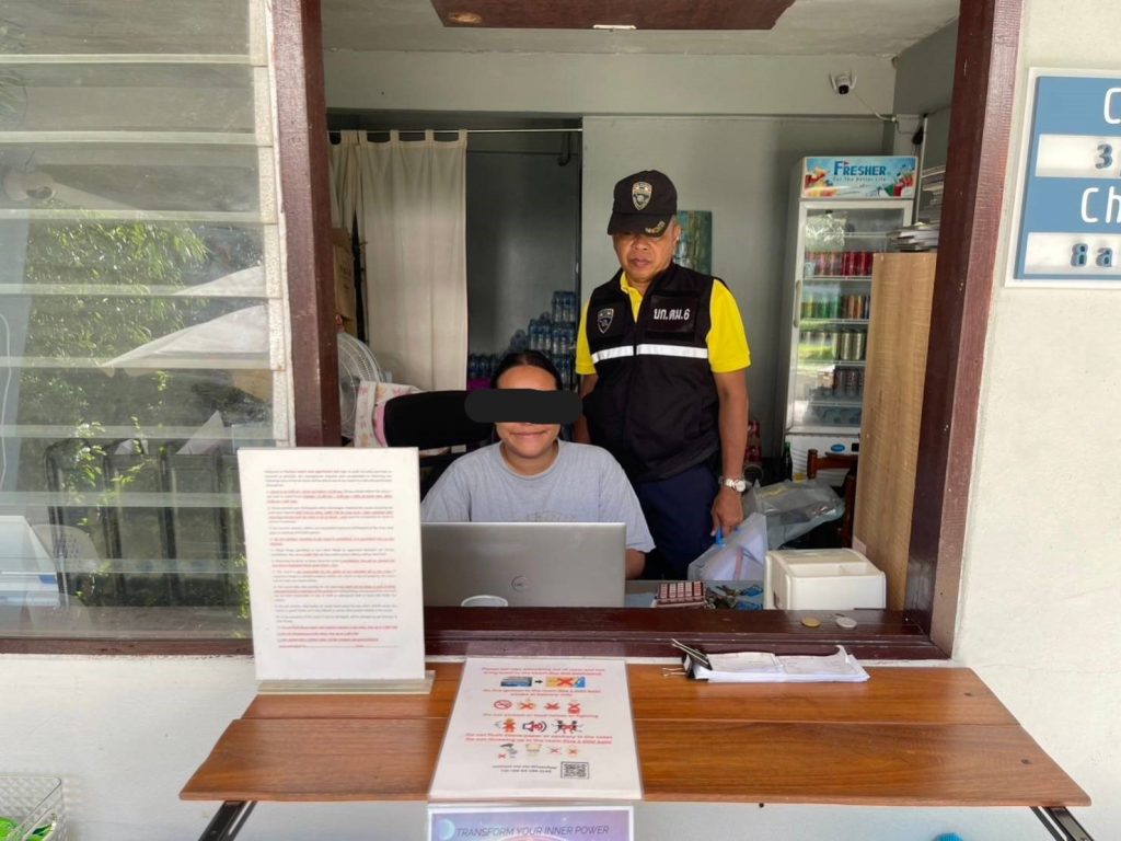 วันที่ 26 ต.ค.2567 ร.ต.ต.อรุณ พรหมทอง รอง สว.(อก.) ตม.จว.สุราษฎร์ธานี พร้อมเจ้าหน้าที่ชุดสืบสวน ชป.5 (เกาะเต่า) ออกตรวจสอบการแจ้งที่พักอาศัยคนต่างด้าว ตาม ม.38 แห่ง พ.ร.บ.คนเข้าเมือง พ.ศ.2522 ราย TOMMY S RESORT เลขที่ 3/1 ม.2 ต.เกาะเต่า อ.เกาะพะงัน จ.สุราษฎร์ธานี โดยมี นางสาวจันทร์วราภรณ์ กาญจนเพ็ญ เป็นผู้นำตรวจ จากการตรวจสอบมีการแจ้งที่พักเรียบร้อยไม่พบการกระทำความผิดแต่อย่างใด
