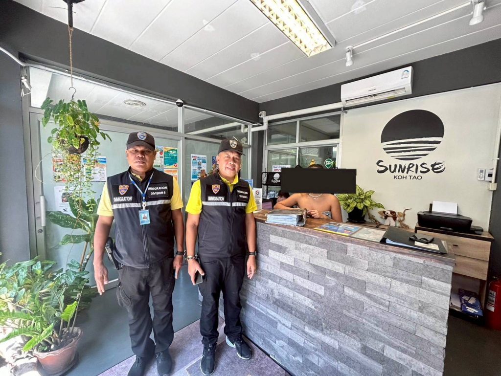 วันที่ 14 ต.ค.2567 เวลา 10.30 น. ร.ต.ต.ภรภัทร เมืองชู รอง สว. (สส.) ตม.จว.สุราษฎร์ธานี พร้อมเจ้าหน้าที่ชุดสืบสวน ชป.5 (เกาะเต่า) ออกตรวจสอบการแจ้งที่พักอาศัยคนต่างด้าว ตาม ม.38 แห่ง พ.ร.บ.คนเข้าเมือง พ.ศ.2522 ดังนี้