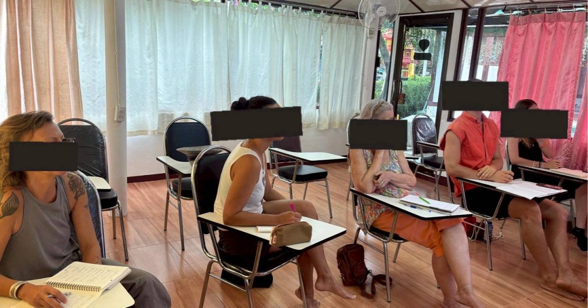 วันที่ 14 พ.ค.2568 เวลา 10.00 น. ร.ต.อ.สิริวัฒน์ สมหวัง รอง สว.ตม.จว.สุราษฎร์ธานี พร้อมเจ้าหน้าที่ชุด ชป.4(พะงัน) ออกตรวจสอบข้อเท็จจริงกรณีคนต่างด้าว ยื่นคำร้องขอรับการตรวจลงตราของโรงเรียนวิชาชีพเกาะพะงัน จำนวน 1 ราย สัญชาติ เยอรมัน เรียนหลักสูตรวิชาภาษาไทย สำหรับชาวต่างประเทศ ระดับต้น และระดับกลาง