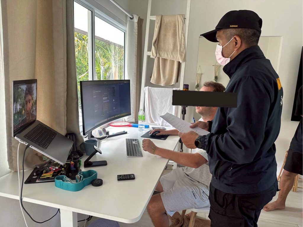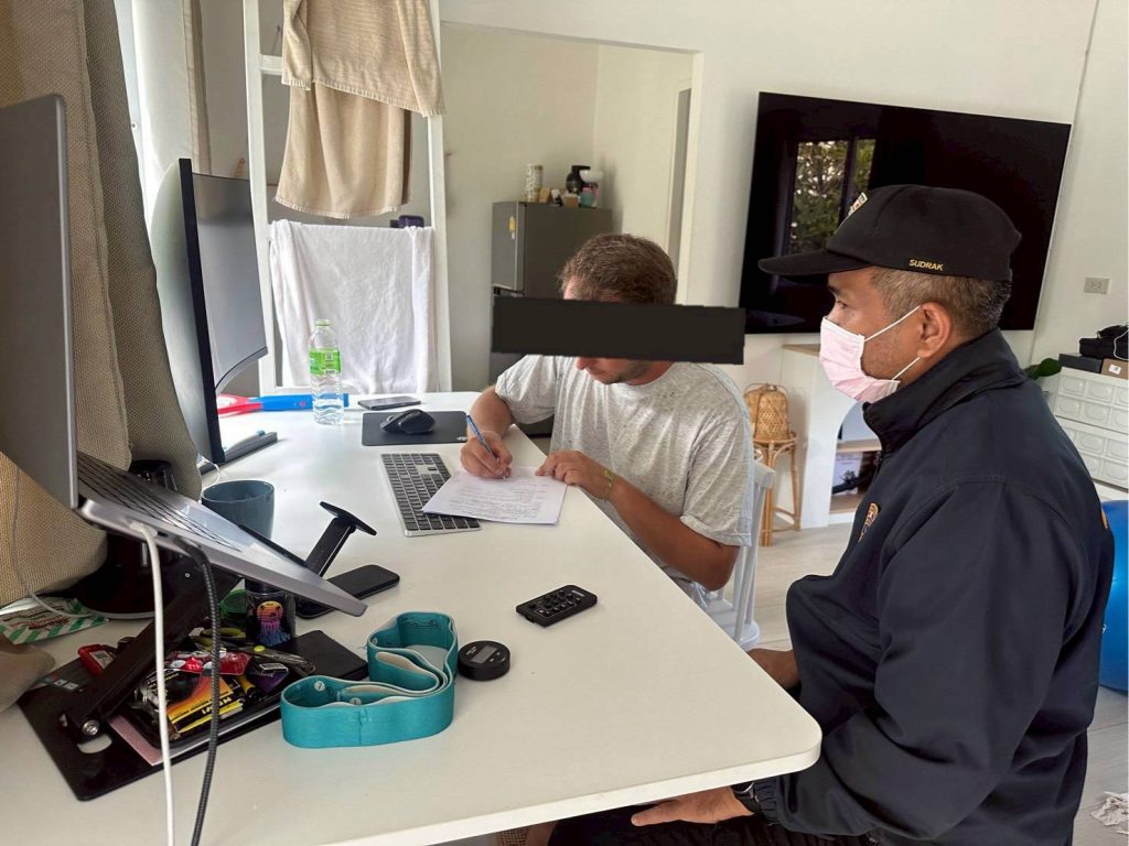 วันที่ 23 เม.ย.2568 เวลา 14.30 น. ร.ต.อ.สิริวัฒน์ สมหวัง รอง สว ตม จว. สุราษฎร์ธานี พร้อมเจ้าหน้าที่ชุดสืบสวนฯ ชป.4 (พะงัน)ได้ออกตรวจสอบข้อเท็จจริง กรณีคนต่างด้าวซึ่งได้ยื่นคำร้องขออยู่ต่อในราชอาณาจักรเป็นการชั่วคราว 1 ราย สัญชาติ เยอรมัน ธุรกิจ ปี 1 บริษัท ซันเซ็ท เลิฟเวอร์ บีช เรสซิเด้นท์ จำกัด ที่อยู่ 145/13 ม.1 ต.บ้านใต้ อ.เกาะพะงัน จว.สุราษฎร์ธานี เจ้าหน้าที่ชุดสืบสวน ชป.4 (พะงัน) ได้ตรวจสอบแล้วพบบุคคลต่างด้าวตรงตามเอกสารที่ได้ยื่นคำร้องไว้