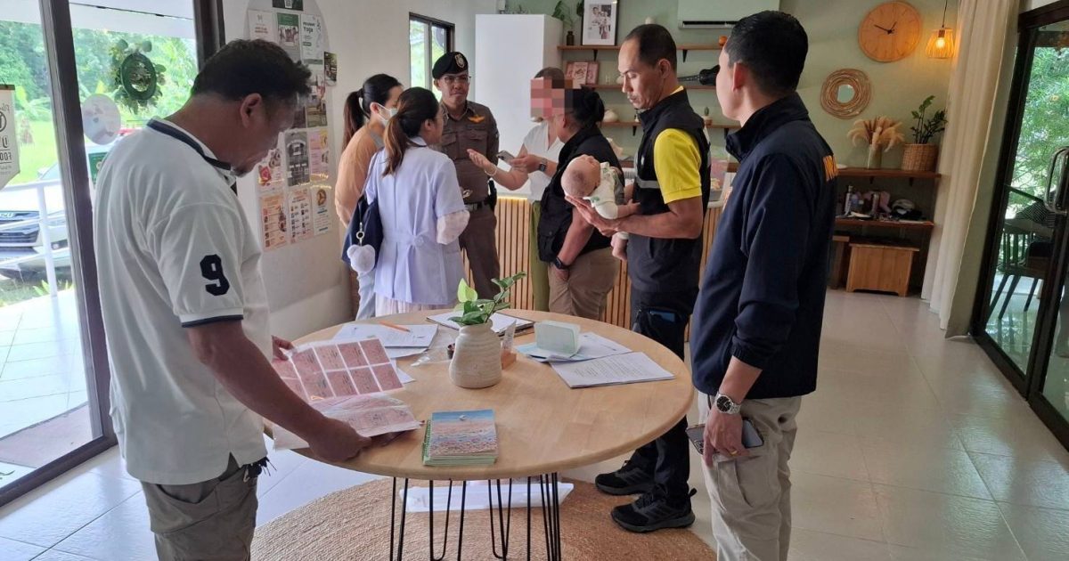 10 ก.พ.2568 เวลา 10.40 น. เจ้าหน้าที่สืบสวน ชป.3 บูรณาการร่วมกับ เจ้าหน้าที่ตำรวจ สภ.บ่อผุด , เจ้าหน้าที่ รพ.สต.มะเร็ต ร่วมกันตรวจสอบสถานประกอบการ บริษัท มอม ทู บี จำกัด เลขที่ 33/14 ม.2 ต.มะเร็ต อ.เกาะสมุย จว.สุราษฎร์ธานี ซึ่งเป็นสถานให้บริการด้านสุขภาพประเภท การทำโยคะก่อนคลอดบุตร การให้คำปรึกษาก่อน ระหว่าง และหลังคลอดบุตร โดยมี MS.EVGENIYA NOSAL อายุ 36 ปี สัญชาติ รัสเซีย หนังสือเดินทางหมายเลข 765125623 ตำแหน่ง ผู้จัดการสถานที่ดังกล่าว เป็นผู้นำตรวจ ผลการตรวจสอบ เจ้าหน้าที่ รพ.สต.มะเร็ต ดำเนินการเก็บพยานหลักฐานต่าง ๆ ในส่วนที่เกี่ยวข้อง รวบรวมนำเสนอ เพื่อดำเนินการร้องทุกข์กล่าวโทษดำเนินคดีตามขั้นตอนของกฏหมายต่อไป