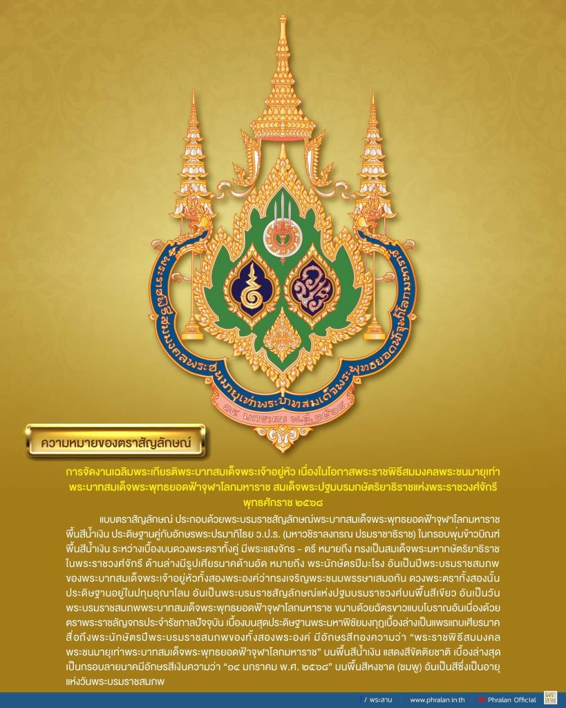 ตราสัญลักษณ์การจัดงานเฉลิมพระเกียรติพระบาทสมเด็จพระเจ้าอยู่หัว เนื่องในโอกาสพระราชพิธีสมมงคลพระชนมายุเท่าพระบาทสมเด็จพระพุทธยอดฟ้าจุฬาโลกมหาราช สมเด็จพระปฐมบรมกษัตริยาธิราชแห่งพระราชวงศ์จักรี พุทธศักราช ๒๕๖๘