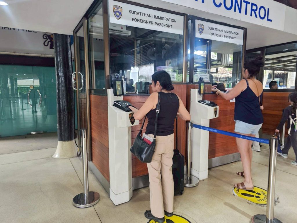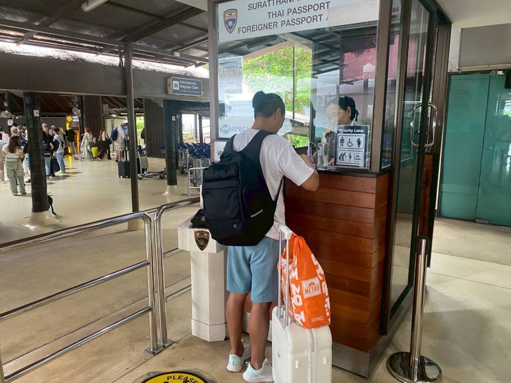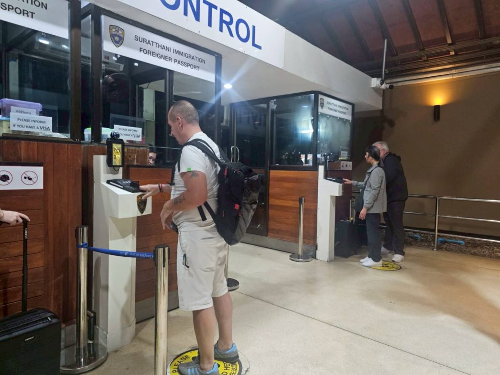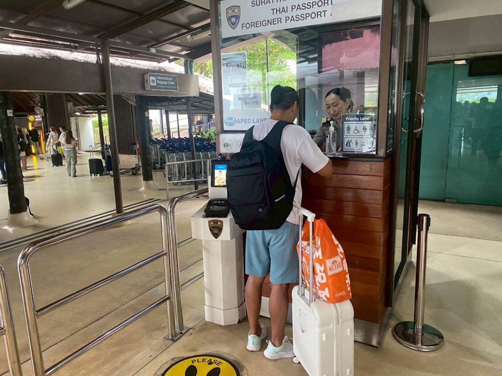 วันที่ 15 เม.ย.68 ร.ต.อ.หญิง ภาวดี หวานทอง ,ร.ต.อ.ธฤติพัฒน์ สมมะลวน,ร.ต.อ.หญิง จันทร์จิรา วิถี รอง สว.ตม. จว.สุราษฎร์ธานี พร้อมด้วยเจ้าหน้าที่ ตม.จว. สุราษฎร์ธานี (ทอ.สมุย) ปฏิบัติหน้าที่ตรวจบุุคคลและพาหนะทางอากาศ, Overstay, Visa on arrival พร้อมดูแล ช่วยเหลือ อำนวยความสะดวกและความเรียบร้อยในแถวระหว่างรอเข้าใช้บริการให้กับผู้โดยสารที่เดินทางเข้า-ออก ทางอากาศในเขตพื้นที่รับผิดชอบประจำสนามบินสมุย อ.เกาะสมุย จว.สุราษฎร์ธานี