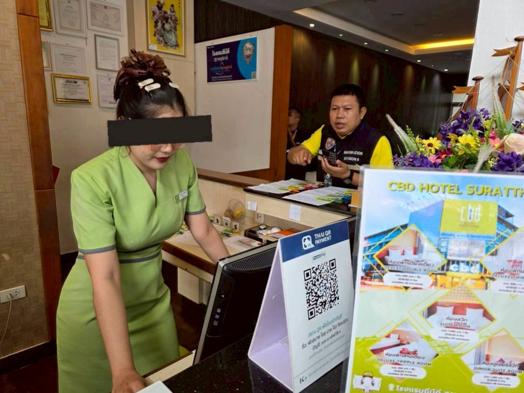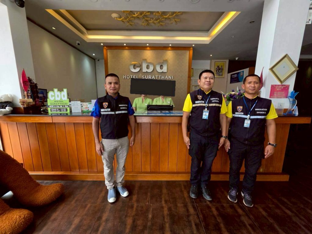 -ผลการตรวจสอบพบว่าทางโรงแรมมีการลงระบบและมีการแจ้งที่พักอาศัยของคนต่างด้าวไว้ถูกต้อง ตามกฏหมายไม่พบการกระทำความผิดแต่อย่างใด โดยมีพนักงานต้อนรับ หมายเลขโทรศัพท์ 077- 281989 เป็นผู้นำตรวจ