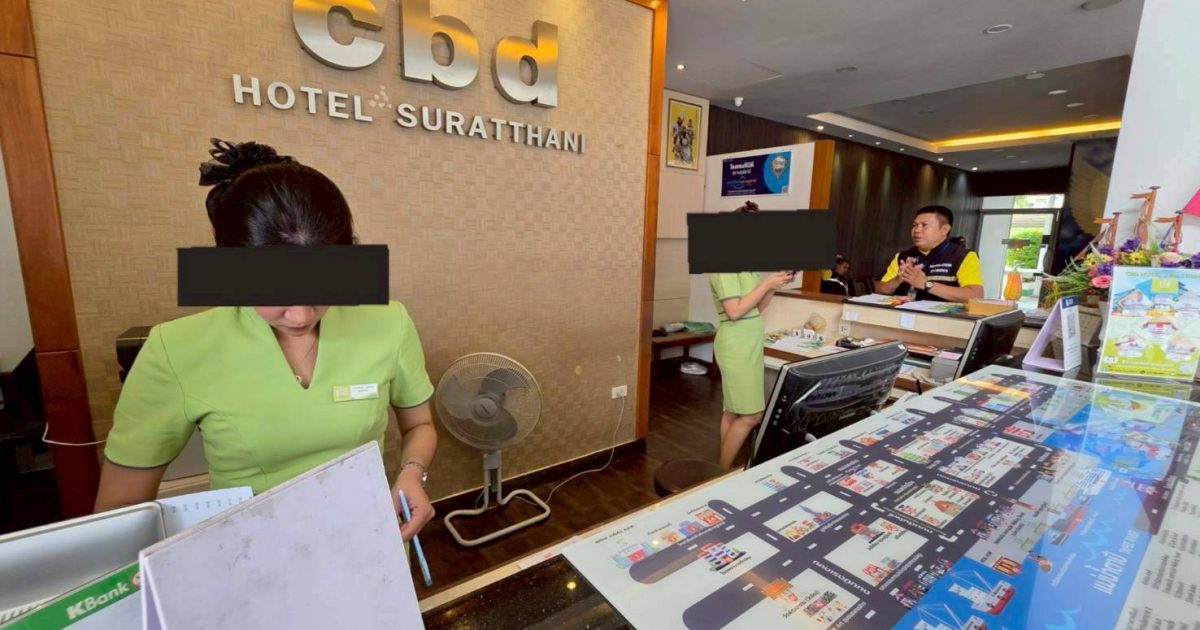 -ผลการตรวจสอบพบว่าทางโรงแรมมีการลงระบบและมีการแจ้งที่พักอาศัยของคนต่างด้าวไว้ถูกต้อง ตามกฏหมายไม่พบการกระทำความผิดแต่อย่างใด โดยมีพนักงานต้อนรับ หมายเลขโทรศัพท์ 077- 281989 เป็นผู้นำตรวจ
