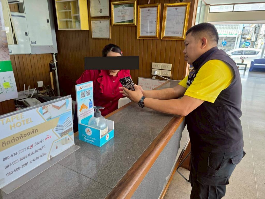 -ผลการตรวจสอบพบว่าโรงแรมได้มีการลงระบบการแจ้งที่พักอาศัยของคนต่างด้าวถูกต้องตามกฎหมาย ไม่พบการกระทำความผิดแต่อย่างใด โดยมี พนง.ต้อนรับหมายเลขโทรศัพท์ 077-945027 เป็นผู้นำตรวจ