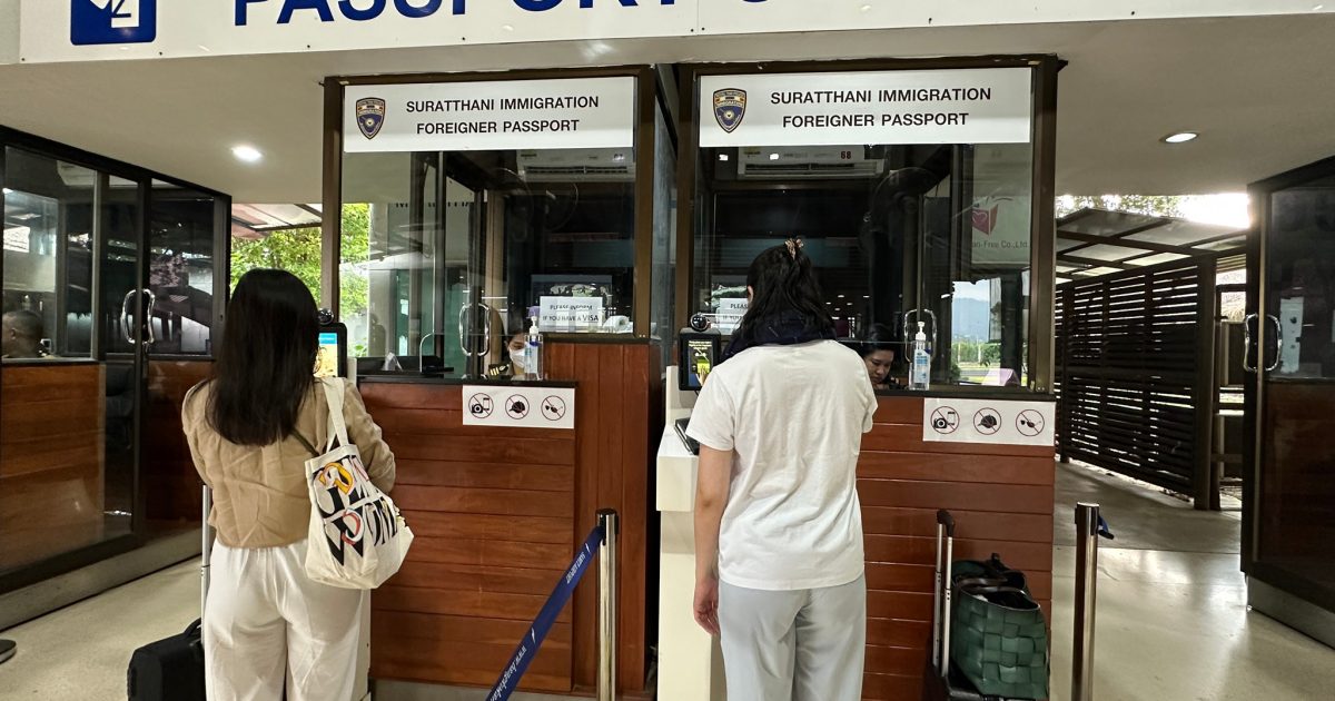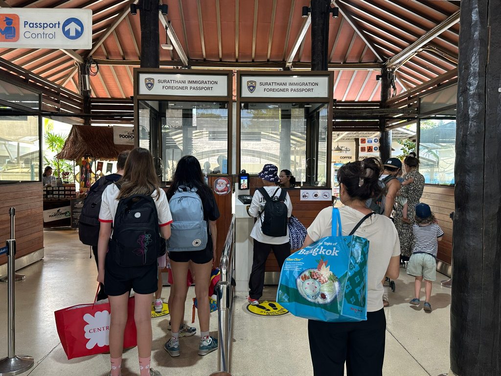 วันที่ 6 ธ.ค.67 ร.ต.อ.ปิติพงษ์ เสนชู รอง สว.ตม.จว.สุราษฎร์ธานี ,ร.ต.อ.หญิง ภาวดี หวานทอง ,ร.ต.อ.หญิง จันทร์จิรา วิถี พร้อมด้วยเจ้าหน้าที่ ตม.จว.สุราษฎร์ธานี (ทอ.สมุย) ปฏิบัติหน้าที่ตรวจบุุคคลและพาหนะทางอากาศ, Overstay, Visa on arrival พร้อมดูแล ช่วยเหลือ อำนวยความสะดวกและความเรียบร้อยในแถวระหว่างรอเข้าใช้บริการให้กับผู้โดยสารที่เดินทางเข้า-ออก ทางอากาศในเขตพื้นที่รับผิดชอบประจำสนามบินสมุย อ.เกาะสมุย จว.สุราษฎร์ธานี