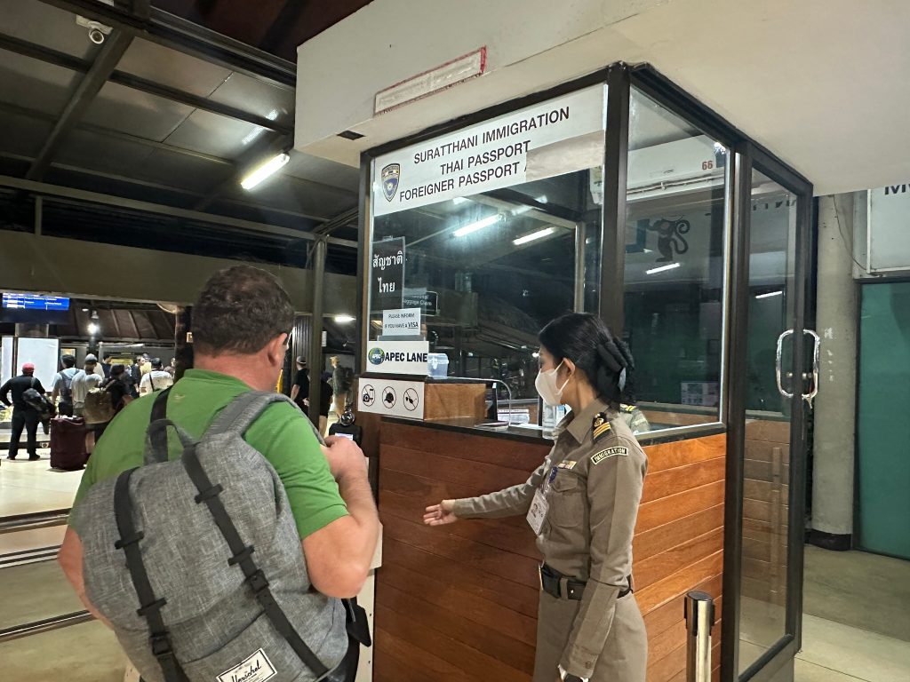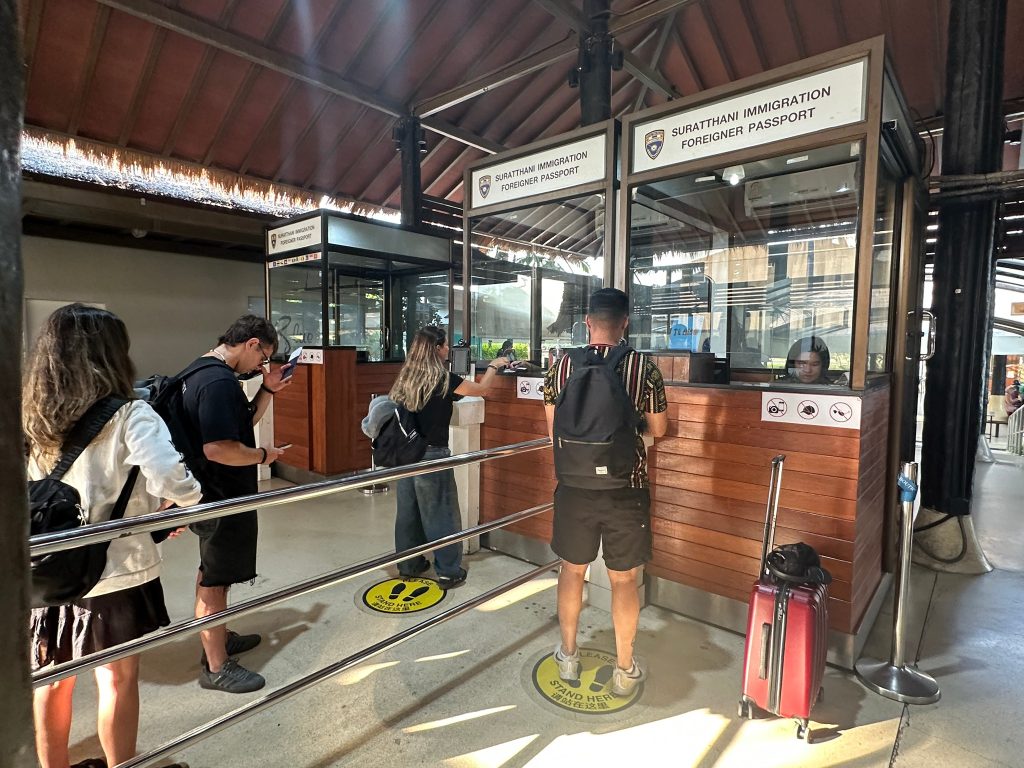 วันที่ 19 ธ.ค.67 ร.ต.อ.ปิติพงษ์ เสนชู รอง สว.ตม.จว.สุราษฎร์ธานี ,ร.ต.อ.หญิง ภาวดี หวานทอง ,ร.ต.อ.หญิง จันทร์จิรา วิถี พร้อมด้วยเจ้าหน้าที่ ตม.จว.สุราษฎร์ธานี (ทอ.สมุย) ปฏิบัติหน้าที่ตรวจบุุคคลและพาหนะทางอากาศ, Overstay, Visa on arrival พร้อมดูแล ช่วยเหลือ อำนวยความสะดวกและความเรียบร้อยในแถวระหว่างรอเข้าใช้บริการให้กับผู้โดยสารที่เดินทางเข้า-ออก ทางอากาศในเขตพื้นที่รับผิดชอบประจำสนามบินสมุย อ.เกาะสมุย จว.สุราษฎร์ธานี