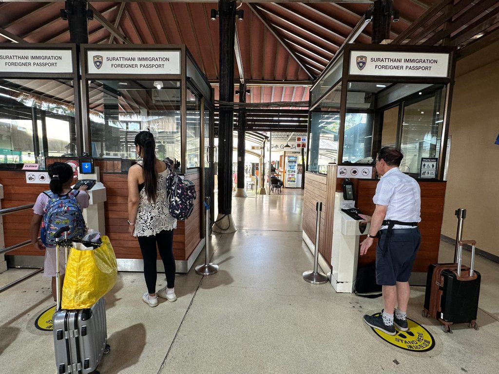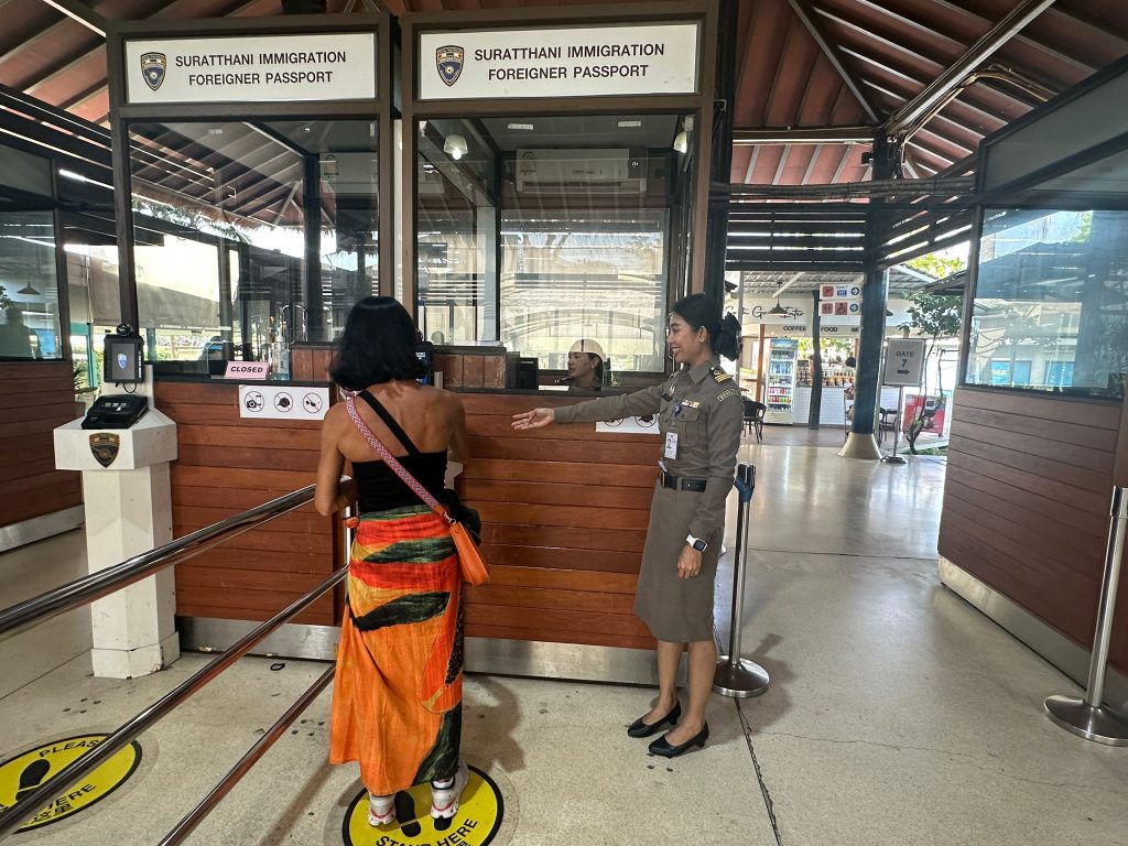 วันที่ 21 ธ.ค.67 ร.ต.อ.ปิติพงษ์ เสนชู รอง สว.ตม.จว.สุราษฎร์ธานี ,ร.ต.อ.หญิง ภาวดี หวานทอง ,ร.ต.อ.หญิง จันทร์จิรา วิถี พร้อมด้วยเจ้าหน้าที่ ตม.จว.สุราษฎร์ธานี (ทอ.สมุย) ปฏิบัติหน้าที่ตรวจบุุคคลและพาหนะทางอากาศ, Overstay, Visa on arrival พร้อมดูแล ช่วยเหลือ อำนวยความสะดวกและความเรียบร้อยในแถวระหว่างรอเข้าใช้บริการให้กับผู้โดยสารที่เดินทางเข้า-ออก ทางอากาศในเขตพื้นที่รับผิดชอบประจำสนามบินสมุย อ.เกาะสมุย จว.สุราษฎร์ธานี
