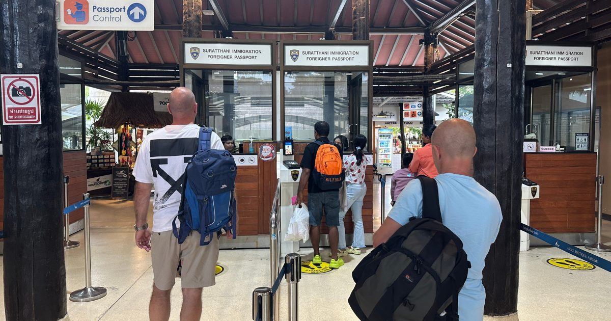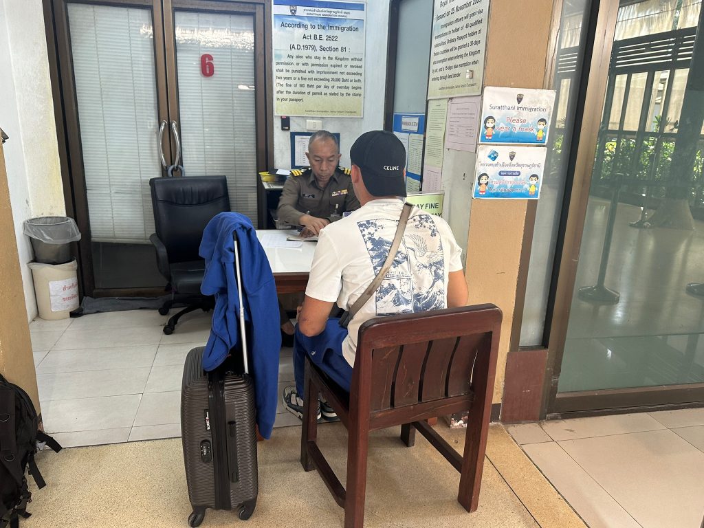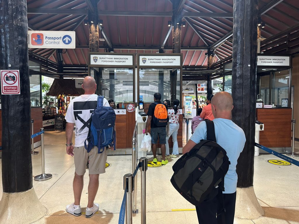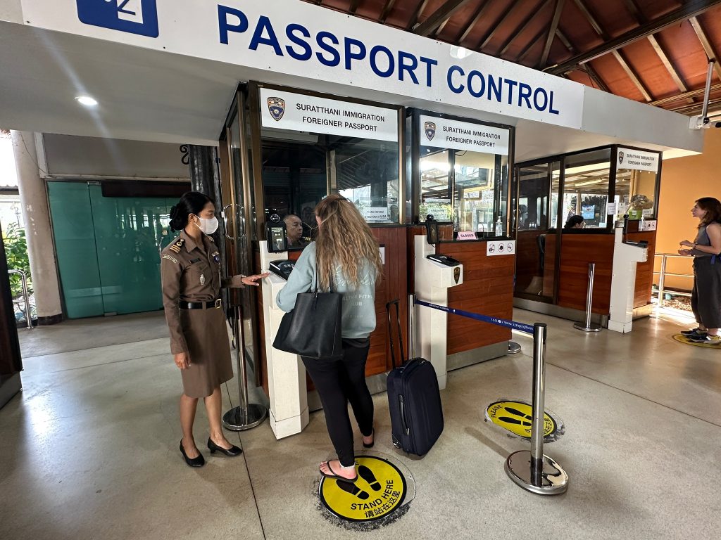 วันที่ 5 ธ.ค.67 ร.ต.อ.ปิติพงษ์ เสนชู รอง สว.ตม.จว.สุราษฎร์ธานี ,ร.ต.อ.หญิง ภาวดี หวานทอง ,ร.ต.อ.หญิง จันทร์จิรา วิถี พร้อมด้วยเจ้าหน้าที่ ตม.จว.สุราษฎร์ธานี (ทอ.สมุย) ปฏิบัติหน้าที่ตรวจบุุคคลและพาหนะทางอากาศ, Overstay, Visa on arrival พร้อมดูแล ช่วยเหลือ อำนวยความสะดวกและความเรียบร้อยในแถวระหว่างรอเข้าใช้บริการให้กับผู้โดยสารที่เดินทางเข้า-ออก ทางอากาศในเขตพื้นที่รับผิดชอบประจำสนามบินสมุย อ.เกาะสมุย จว.สุราษฎร์ธานี