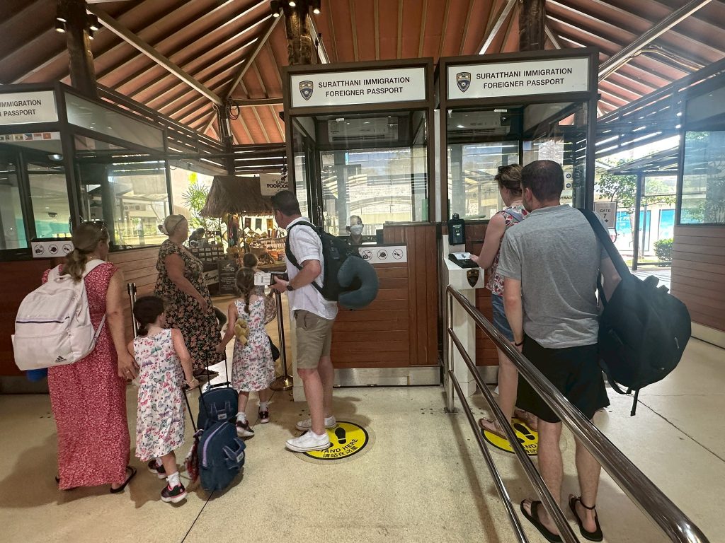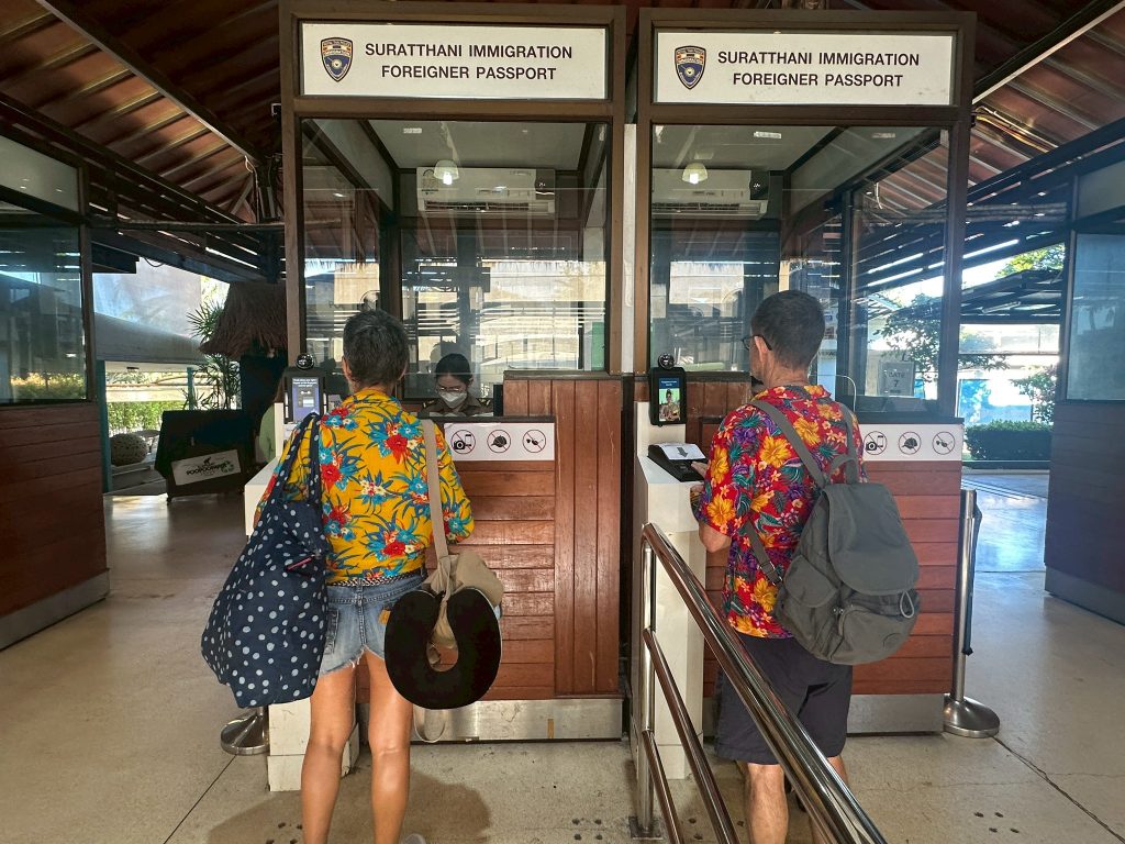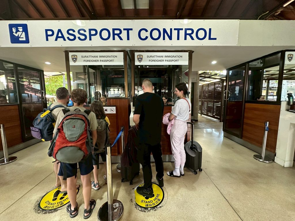 วันที่ 13 เม.ย.68 ร.ต.อ.ธฤติพัฒน์ สมมะลวน รอง สว.ตม.จว.สุราษฎร์ธานี ,ร.ต.อ.หญิง ภาวดี หวานทอง ,ร.ต.อ.หญิง จันทร์จิรา วิถี พร้อมด้วยเจ้าหน้าที่ ตม.จว.สุราษฎร์ธานี (ทอ.สมุย) ปฏิบัติหน้าที่ตรวจบุคคลและพาหนะทางอากาศ, Overstay, Visa on arrival พร้อมดูแล ช่วยเหลือ อำนวยความสะดวกและความเรียบร้อยในแถวระหว่างรอเข้าใช้บริการให้กับผู้โดยสารที่เดินทางเข้า-ออก ทางอากาศในเขตพื้นที่รับผิดชอบประจำสนามบินสมุย อ.เกาะสมุย จว.สุราษฎร์ธานี