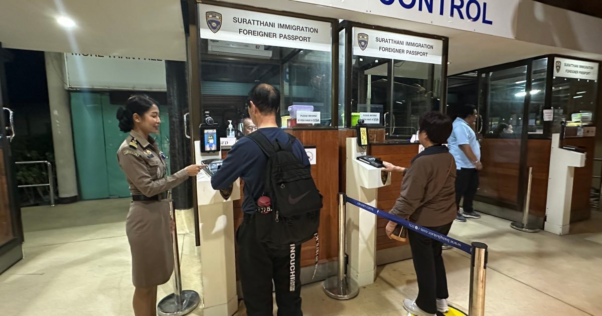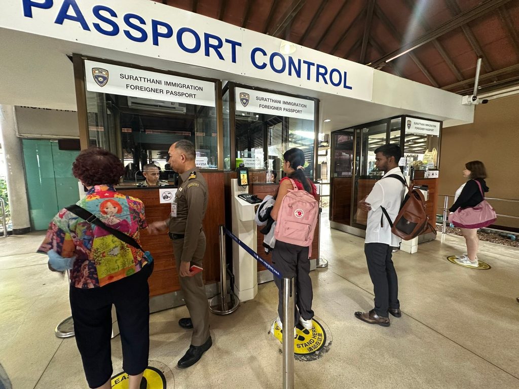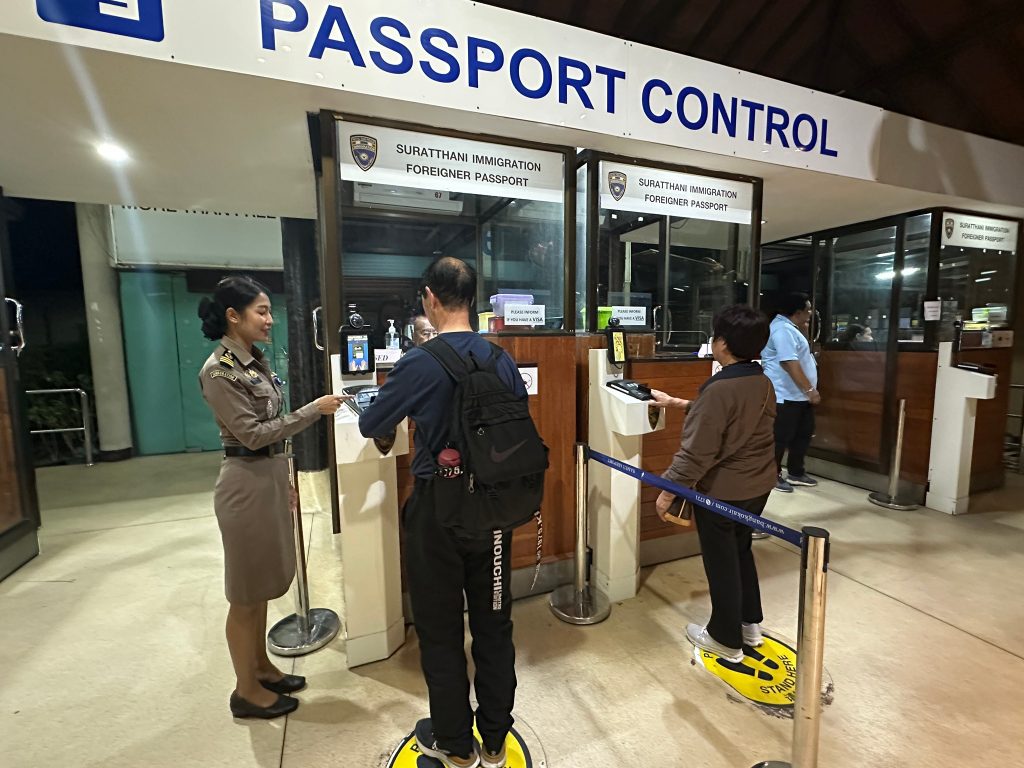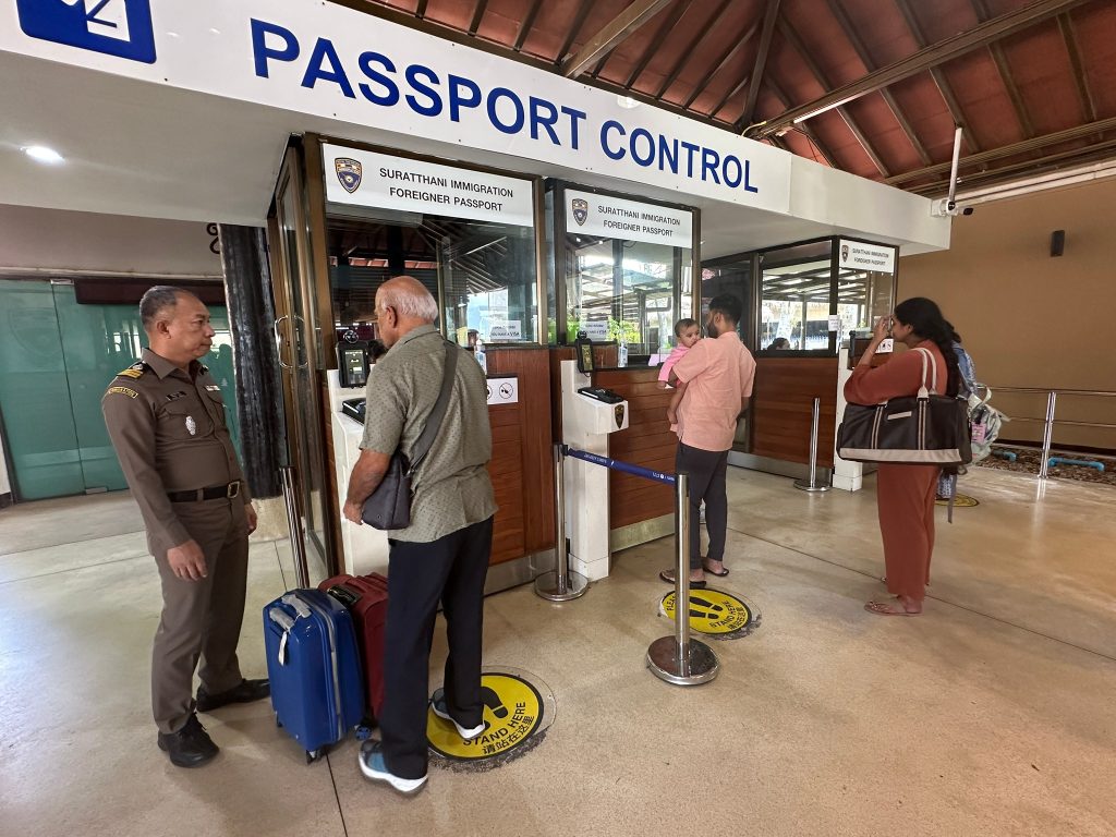 วันที่ 1 ม.ค.68 ร.ต.อ.ปิติพงษ์ เสนชู รอง สว.ตม.จว.สุราษฎร์ธานี ,ร.ต.อ.หญิง ภาวดี หวานทอง ,ร.ต.อ.หญิง จันทร์จิรา วิถี พร้อมด้วยเจ้าหน้าที่ ตม.จว.สุราษฎร์ธานี (ทอ.สมุย) ปฏิบัติหน้าที่ตรวจบุุคคลและพาหนะทางอากาศ, Overstay, Visa on arrival พร้อมดูแล ช่วยเหลือ อำนวยความสะดวกและความเรียบร้อยในแถวระหว่างรอเข้าใช้บริการให้กับผู้โดยสารที่เดินทางเข้า-ออก ทางอากาศในเขตพื้นที่รับผิดชอบประจำสนามบินสมุย อ.เกาะสมุย จว.สุราษฎร์ธานี