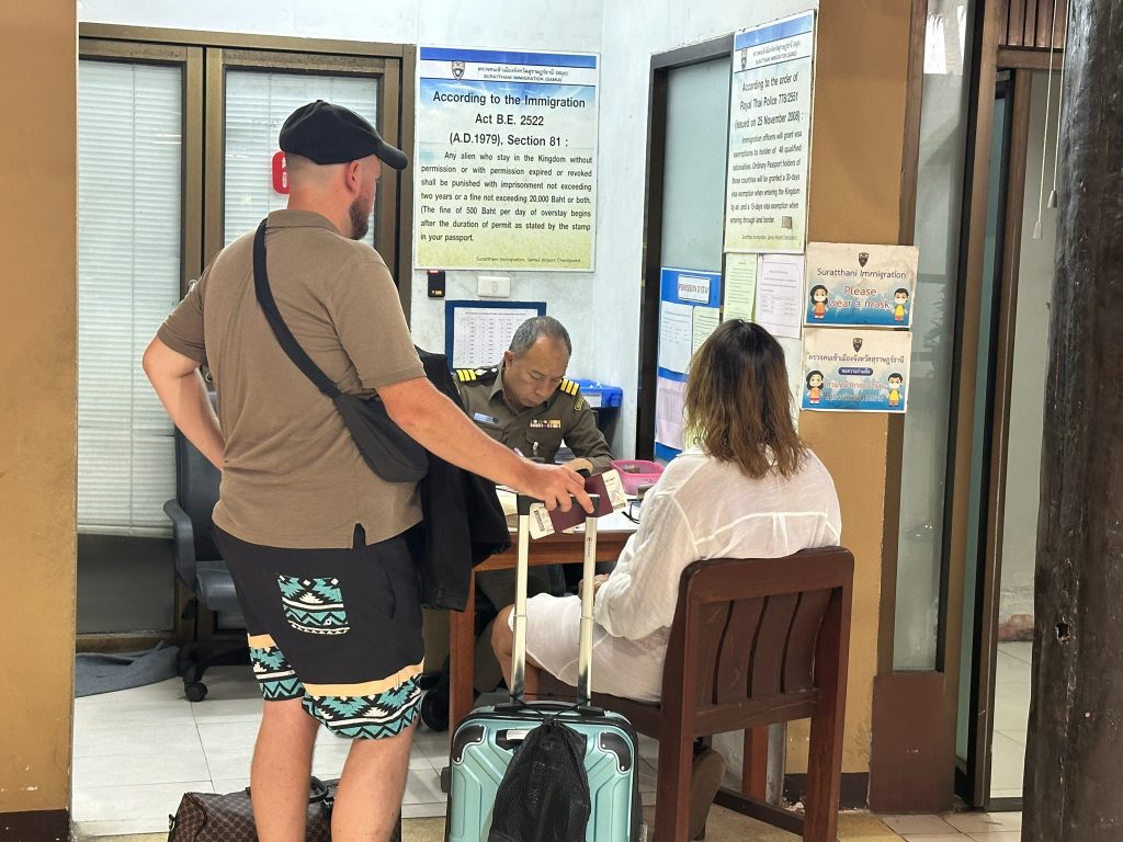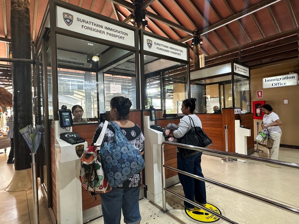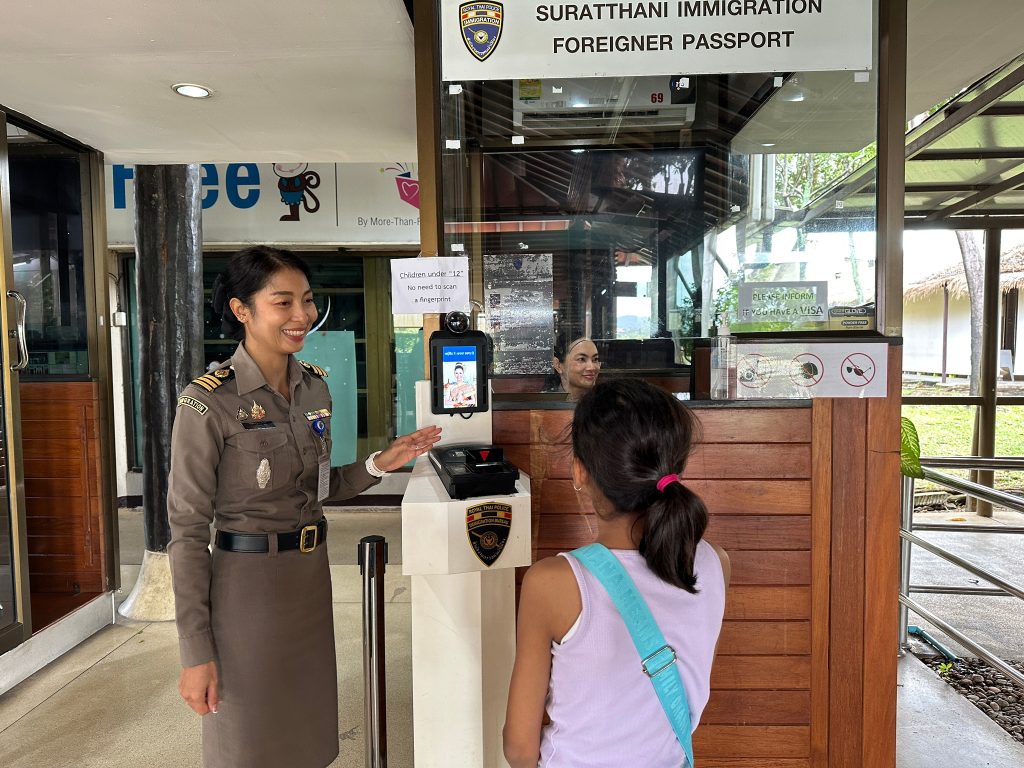 วันที่ 5 ม.ค.68 ร.ต.อ.ปิติพงษ์ เสนชู รอง สว.ตม.จว.สุราษฎร์ธานี ,ร.ต.อ.หญิง ภาวดี หวานทอง ,ร.ต.อ.หญิง จันทร์จิรา วิถี พร้อมด้วยเจ้าหน้าที่ ตม.จว.สุราษฎร์ธานี (ทอ.สมุย) ปฏิบัติหน้าที่ตรวจบุุคคลและพาหนะทางอากาศ, Overstay, Visa on arrival พร้อมดูแล ช่วยเหลือ อำนวยความสะดวกและความเรียบร้อยในแถวระหว่างรอเข้าใช้บริการให้กับผู้โดยสารที่เดินทางเข้า-ออก ทางอากาศในเขตพื้นที่รับผิดชอบประจำสนามบินสมุย อ.เกาะสมุย จว.สุราษฎร์ธานี