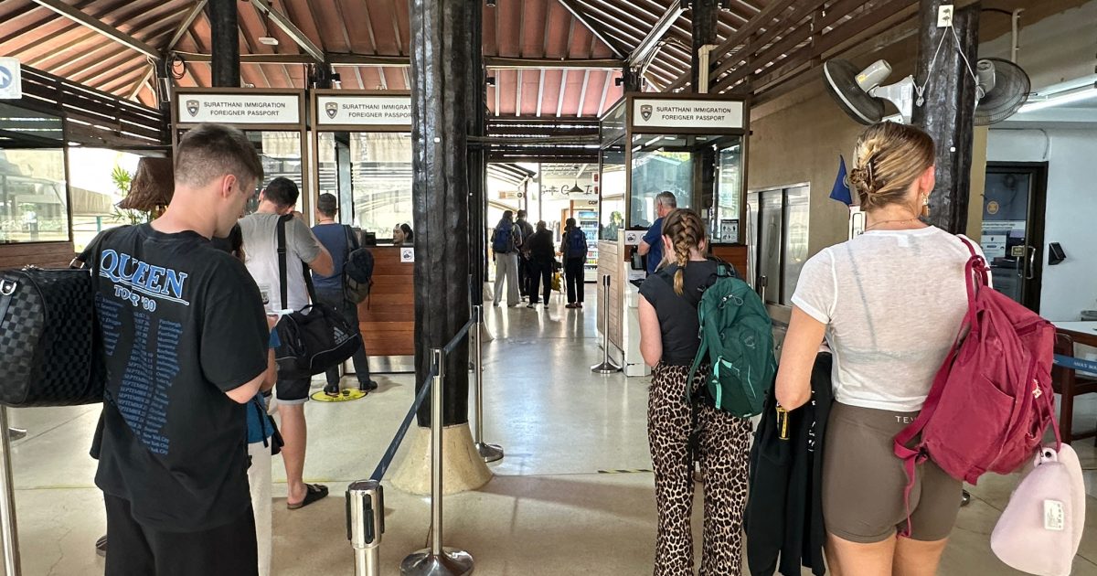 วันที่ 5 ม.ค.68 ร.ต.อ.ปิติพงษ์ เสนชู รอง สว.ตม.จว.สุราษฎร์ธานี ,ร.ต.อ.หญิง ภาวดี หวานทอง ,ร.ต.อ.หญิง จันทร์จิรา วิถี พร้อมด้วยเจ้าหน้าที่ ตม.จว.สุราษฎร์ธานี (ทอ.สมุย) ปฏิบัติหน้าที่ตรวจบุุคคลและพาหนะทางอากาศ, Overstay, Visa on arrival พร้อมดูแล ช่วยเหลือ อำนวยความสะดวกและความเรียบร้อยในแถวระหว่างรอเข้าใช้บริการให้กับผู้โดยสารที่เดินทางเข้า-ออก ทางอากาศในเขตพื้นที่รับผิดชอบประจำสนามบินสมุย อ.เกาะสมุย จว.สุราษฎร์ธานี