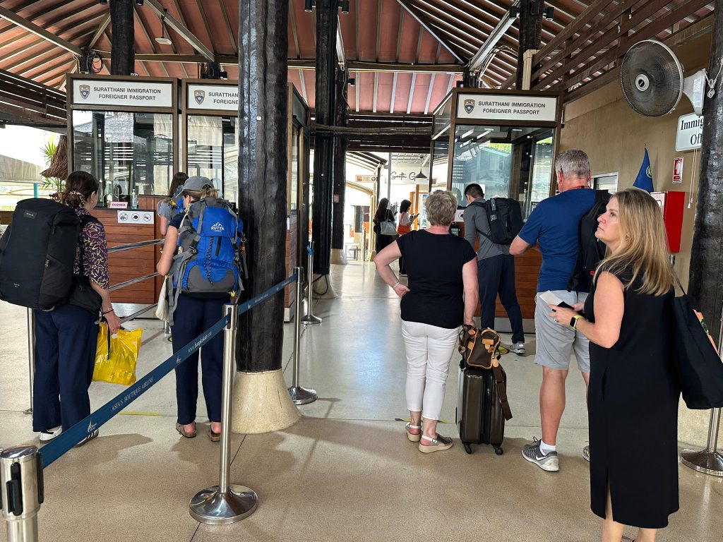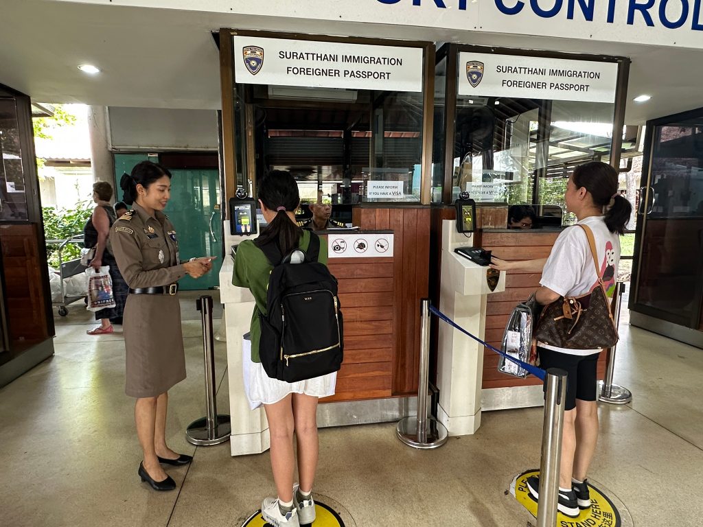 วันที่ 14 ม.ค.68 ร.ต.อ.ปิติพงษ์ เสนชู รอง สว.ตม.จว.สุราษฎร์ธานี ,ร.ต.อ.หญิง ภาวดี หวานทอง ,ร.ต.อ.หญิง จันทร์จิรา วิถี พร้อมด้วยเจ้าหน้าที่ ตม.จว.สุราษฎร์ธานี (ทอ.สมุย) ปฏิบัติหน้าที่ตรวจบุุคคลและพาหนะทางอากาศ, Overstay, Visa on arrival พร้อมดูแล ช่วยเหลือ อำนวยความสะดวกและความเรียบร้อยในแถวระหว่างรอเข้าใช้บริการให้กับผู้โดยสารที่เดินทางเข้า-ออก ทางอากาศในเขตพื้นที่รับผิดชอบประจำสนามบินสมุย อ.เกาะสมุย จว.สุราษฎร์ธานี