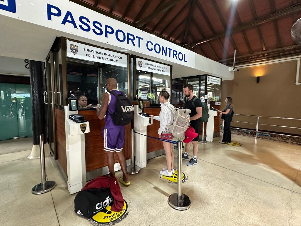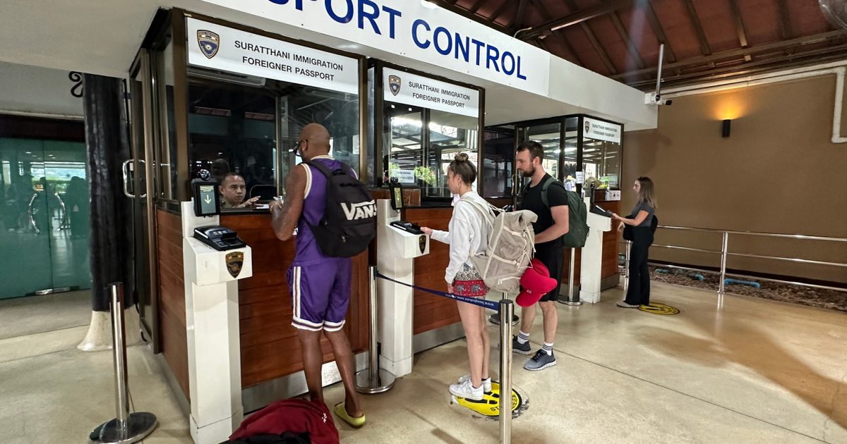 วันที่ 15 ม.ค.68 ร.ต.อ.ปิติพงษ์ เสนชู รอง สว.ตม.จว.สุราษฎร์ธานี ,ร.ต.อ.หญิง ภาวดี หวานทอง ,ร.ต.อ.หญิง จันทร์จิรา วิถี พร้อมด้วยเจ้าหน้าที่ ตม.จว.สุราษฎร์ธานี (ทอ.สมุย) ปฏิบัติหน้าที่ตรวจบุุคคลและพาหนะทางอากาศ, Overstay, Visa on arrival พร้อมดูแล ช่วยเหลือ อำนวยความสะดวกและความเรียบร้อยในแถวระหว่างรอเข้าใช้บริการให้กับผู้โดยสารที่เดินทางเข้า-ออก ทางอากาศในเขตพื้นที่รับผิดชอบประจำสนามบินสมุย อ.เกาะสมุย จว.สุราษฎร์ธานี