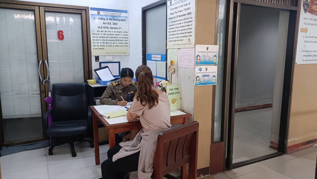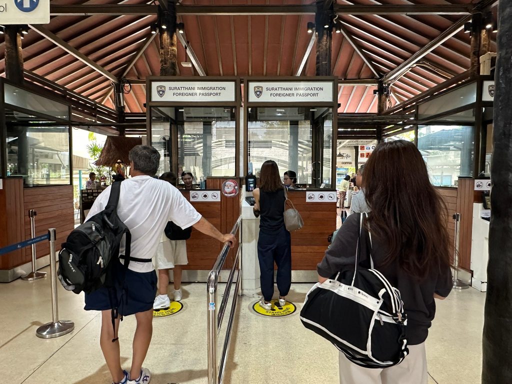 วันที่ 16 ม.ค.68 ร.ต.อ.ปิติพงษ์ เสนชู รอง สว.ตม.จว.สุราษฎร์ธานี ,ร.ต.อ.หญิง ภาวดี หวานทอง ,ร.ต.อ.หญิง จันทร์จิรา วิถี พร้อมด้วยเจ้าหน้าที่ ตม.จว.สุราษฎร์ธานี (ทอ.สมุย) ปฏิบัติหน้าที่ตรวจบุุคคลและพาหนะทางอากาศ, Overstay, Visa on arrival พร้อมดูแล ช่วยเหลือ อำนวยความสะดวกและความเรียบร้อยในแถวระหว่างรอเข้าใช้บริการให้กับผู้โดยสารที่เดินทางเข้า-ออก ทางอากาศในเขตพื้นที่รับผิดชอบประจำสนามบินสมุย อ.เกาะสมุย จว.สุราษฎร์ธานี