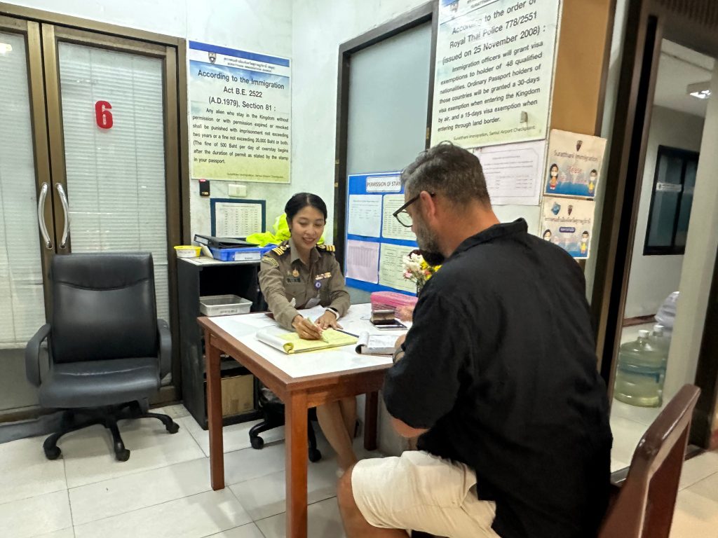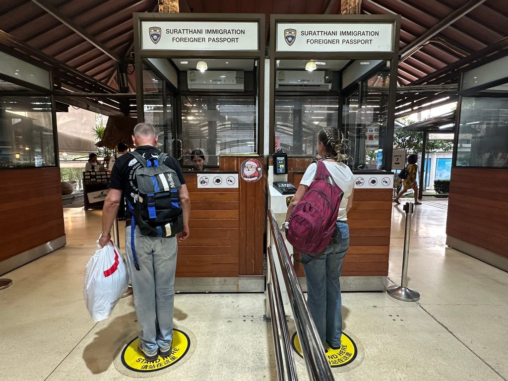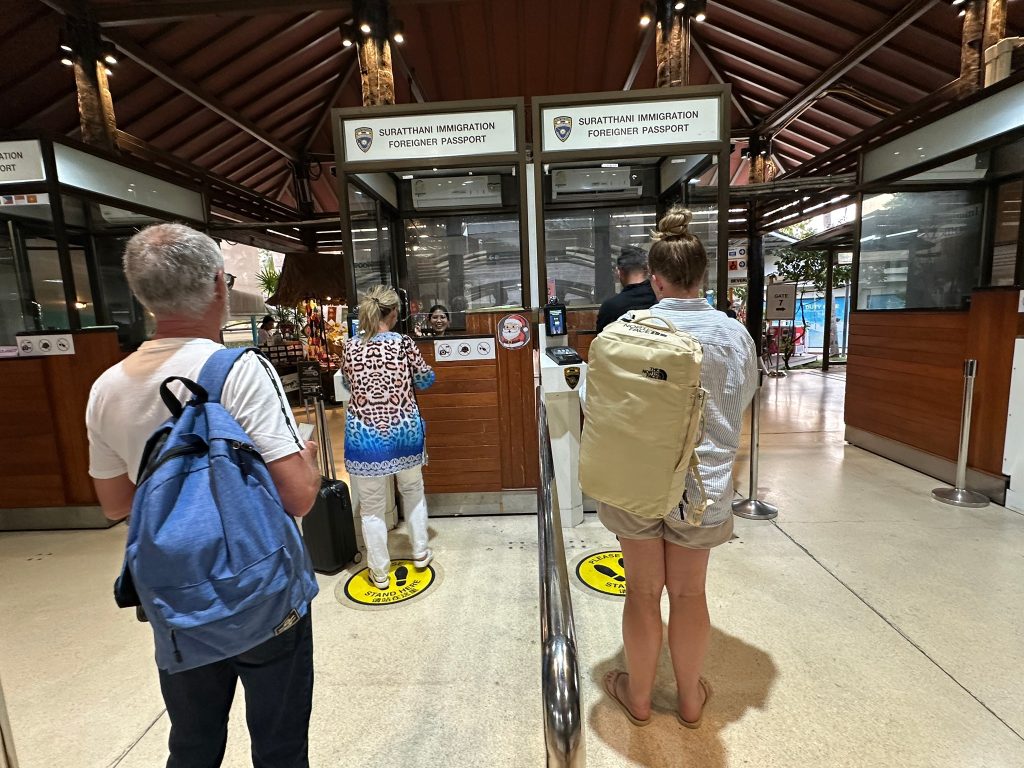 วันที่ 18 ม.ค.68 ร.ต.อ.ปิติพงษ์ เสนชู รอง สว.ตม.จว.สุราษฎร์ธานี ,ร.ต.อ.หญิง ภาวดี หวานทอง ,ร.ต.อ.หญิง จันทร์จิรา วิถี พร้อมด้วยเจ้าหน้าที่ ตม.จว.สุราษฎร์ธานี (ทอ.สมุย) ปฏิบัติหน้าที่ตรวจบุุคคลและพาหนะทางอากาศ, Overstay, Visa on arrival พร้อมดูแล ช่วยเหลือ อำนวยความสะดวกและความเรียบร้อยในแถวระหว่างรอเข้าใช้บริการให้กับผู้โดยสารที่เดินทางเข้า-ออก ทางอากาศในเขตพื้นที่รับผิดชอบประจำสนามบินสมุย อ.เกาะสมุย จว.สุราษฎร์ธานี