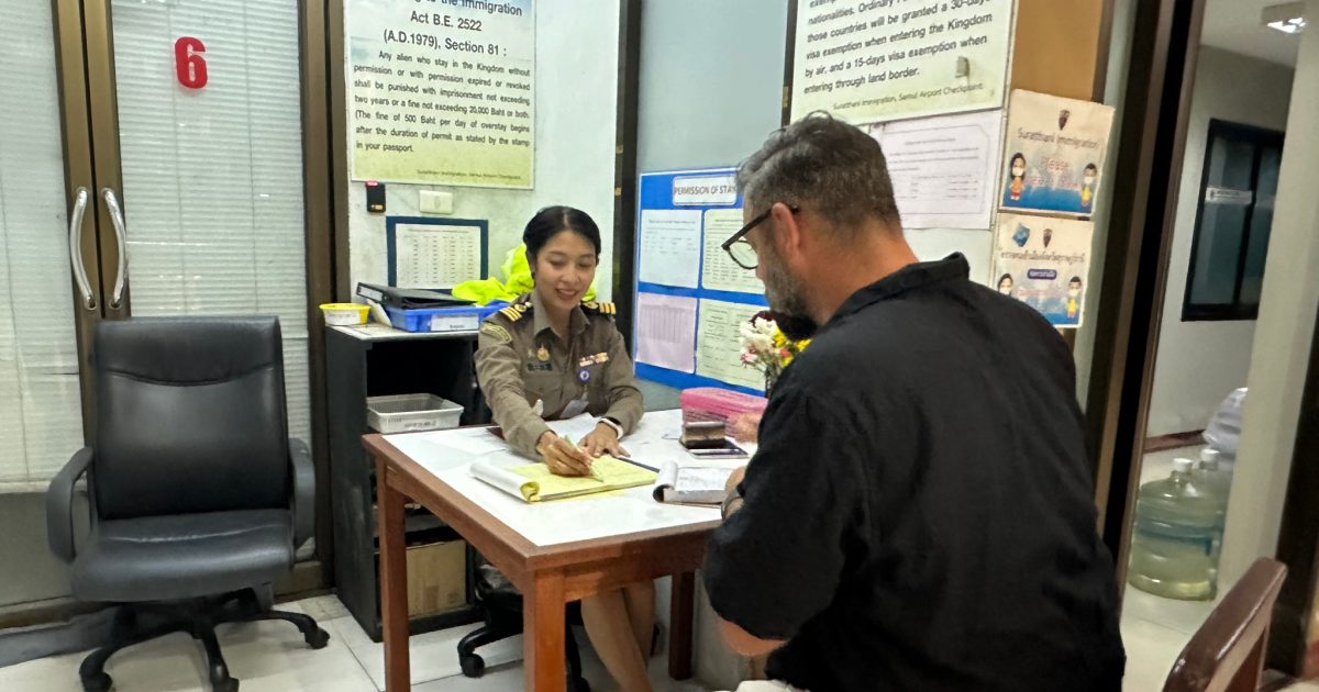 วันที่ 18 ม.ค.68 ร.ต.อ.ปิติพงษ์ เสนชู รอง สว.ตม.จว.สุราษฎร์ธานี ,ร.ต.อ.หญิง ภาวดี หวานทอง ,ร.ต.อ.หญิง จันทร์จิรา วิถี พร้อมด้วยเจ้าหน้าที่ ตม.จว.สุราษฎร์ธานี (ทอ.สมุย) ปฏิบัติหน้าที่ตรวจบุุคคลและพาหนะทางอากาศ, Overstay, Visa on arrival พร้อมดูแล ช่วยเหลือ อำนวยความสะดวกและความเรียบร้อยในแถวระหว่างรอเข้าใช้บริการให้กับผู้โดยสารที่เดินทางเข้า-ออก ทางอากาศในเขตพื้นที่รับผิดชอบประจำสนามบินสมุย อ.เกาะสมุย จว.สุราษฎร์ธานี