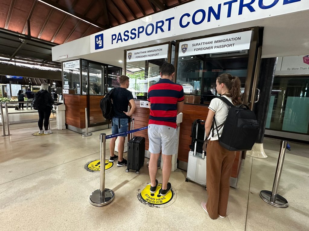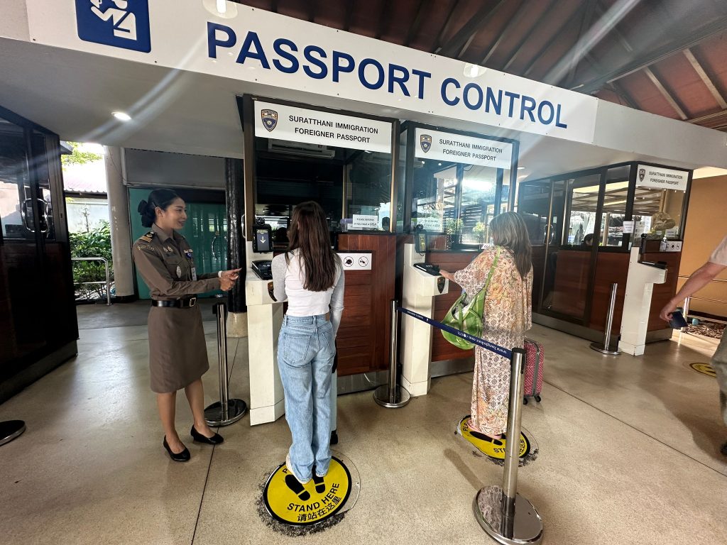 วันที่ 19 ม.ค.68 ร.ต.อ.ปิติพงษ์ เสนชู รอง สว.ตม.จว.สุราษฎร์ธานี ,ร.ต.อ.หญิง ภาวดี หวานทอง ,ร.ต.อ.หญิง จันทร์จิรา วิถี พร้อมด้วยเจ้าหน้าที่ ตม.จว.สุราษฎร์ธานี (ทอ.สมุย) ปฏิบัติหน้าที่ตรวจบุุคคลและพาหนะทางอากาศ, Overstay, Visa on arrival พร้อมดูแล ช่วยเหลือ อำนวยความสะดวกและความเรียบร้อยในแถวระหว่างรอเข้าใช้บริการให้กับผู้โดยสารที่เดินทางเข้า-ออก ทางอากาศในเขตพื้นที่รับผิดชอบประจำสนามบินสมุย อ.เกาะสมุย จว.สุราษฎร์ธานี