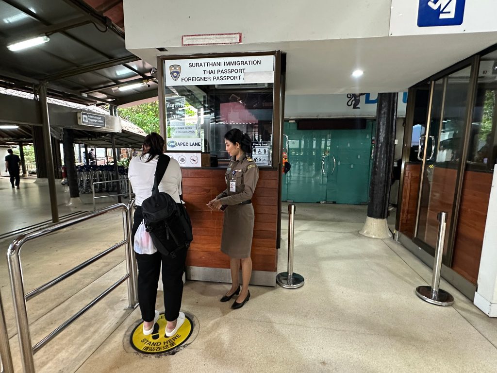 วันที่ 20 ม.ค.68 ร.ต.อ.ปิติพงษ์ เสนชู รอง สว.ตม.จว.สุราษฎร์ธานี ,ร.ต.อ.หญิง ภาวดี หวานทอง ,ร.ต.อ.หญิง จันทร์จิรา วิถี พร้อมด้วยเจ้าหน้าที่ ตม.จว.สุราษฎร์ธานี (ทอ.สมุย) ปฏิบัติหน้าที่ตรวจบุุคคลและพาหนะทางอากาศ, Overstay, Visa on arrival พร้อมดูแล ช่วยเหลือ อำนวยความสะดวกและความเรียบร้อยในแถวระหว่างรอเข้าใช้บริการให้กับผู้โดยสารที่เดินทางเข้า-ออก ทางอากาศในเขตพื้นที่รับผิดชอบประจำสนามบินสมุย อ.เกาะสมุย จว.สุราษฎร์ธานี