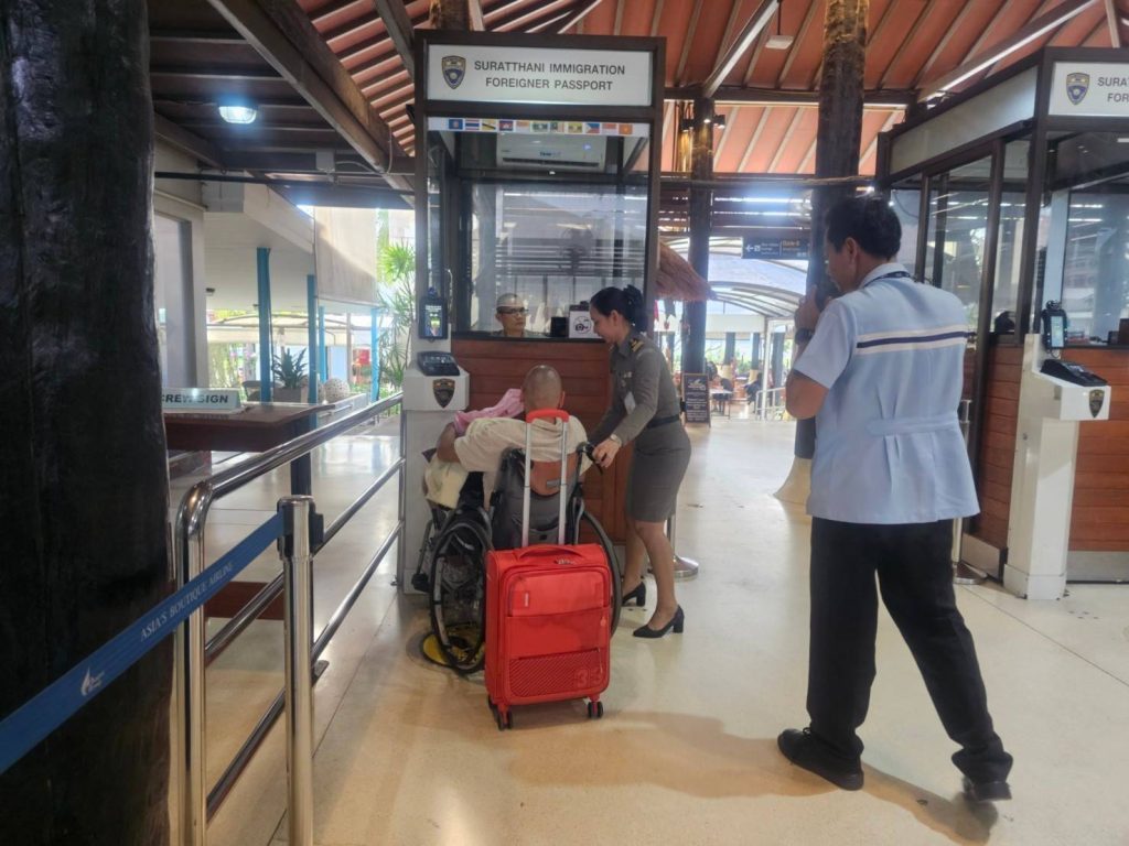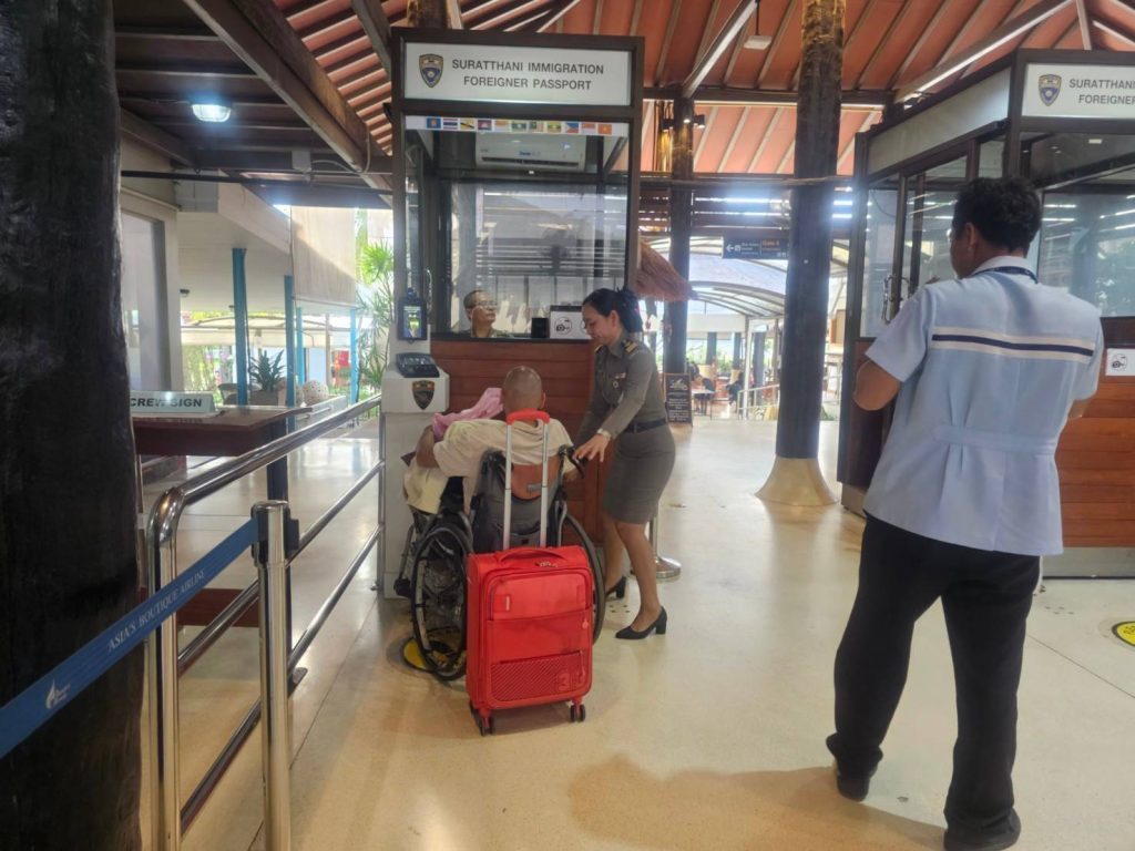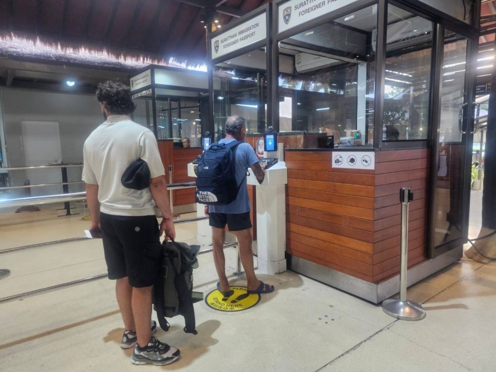 วันที่ 25 ม.ค.68 ร.ต.อ.ปิติพงษ์ เสนชู ,ร.ต.อ.หญิง ภาวดี หวานทอง ,ร.ต.อ.หญิง จันทร์จิรา วิถี รอง สว.ตม.จว.สุราษฎร์ธานี พร้อมด้วยเจ้าหน้าที่ ตม.จว. สุราษฎร์ธานี (ทอ.สมุย) ปฏิบัติหน้าที่ตรวจบุุคคลและพาหนะทางอากาศ, Overstay, Visa on arrival พร้อมดูแล ช่วยเหลือ อำนวยความสะดวกและความเรียบร้อยในแถวระหว่างรอเข้าใช้บริการให้กับผู้โดยสารที่เดินทางเข้า-ออก ทางอากาศในเขตพื้นที่รับผิดชอบประจำสนามบินสมุย อ.เกาะสมุย จว.สุราษฎร์ธานี