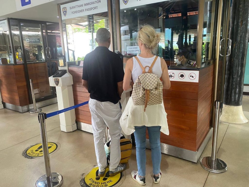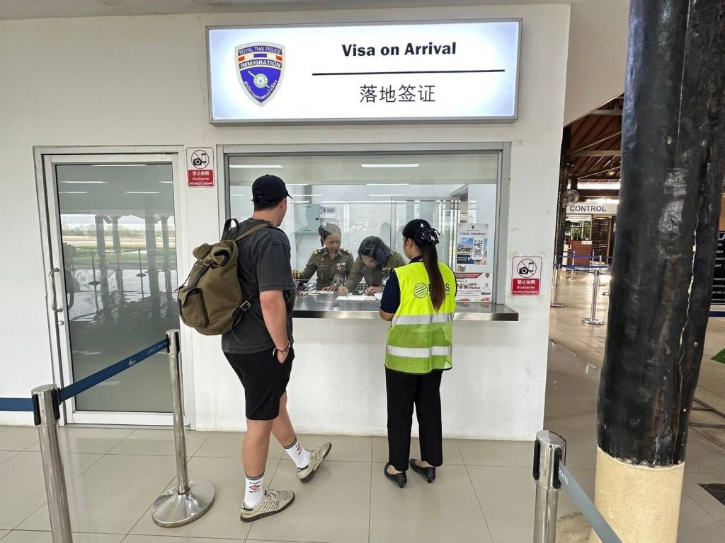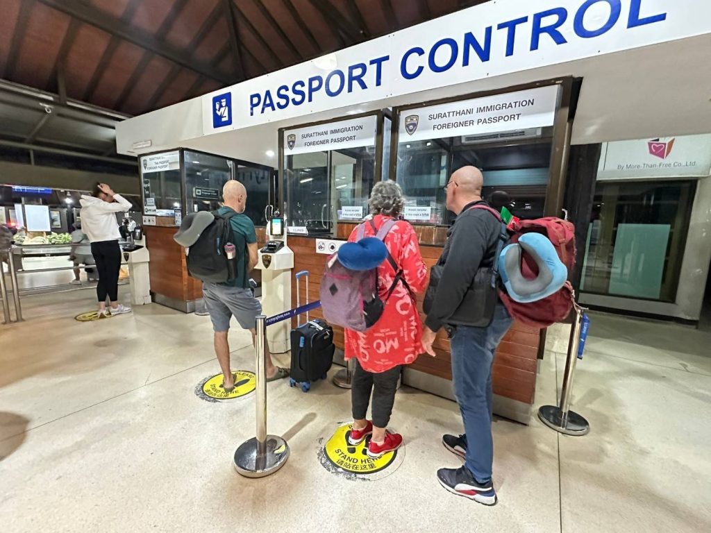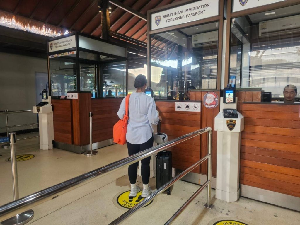 วันที่ 21 ม.ค.68 ร.ต.อ.ปิติพงษ์ เสนชู ,ร.ต.อ.หญิง ภาวดี หวานทอง ,ร.ต.อ.หญิง จันทร์จิรา วิถี รอง สว.ตม.จว.สุราษฎร์ธานี พร้อมด้วยเจ้าหน้าที่ ตม.จว. สุราษฎร์ธานี (ทอ.สมุย) ปฏิบัติหน้าที่ตรวจบุุคคลและพาหนะทางอากาศ, Overstay, Visa on arrival พร้อมดูแล ช่วยเหลือ อำนวยความสะดวกและความเรียบร้อยในแถวระหว่างรอเข้าใช้บริการให้กับผู้โดยสารที่เดินทางเข้า-ออก ทางอากาศในเขตพื้นที่รับผิดชอบประจำสนามบินสมุย อ.เกาะสมุย จว.สุราษฎร์ธานี