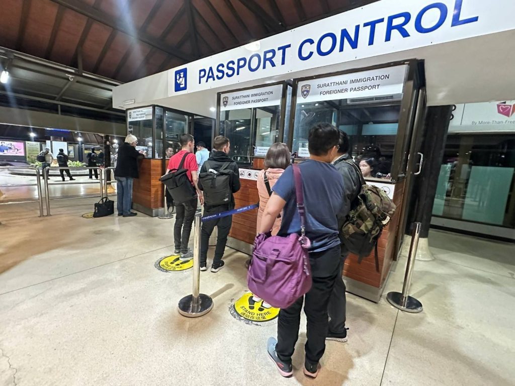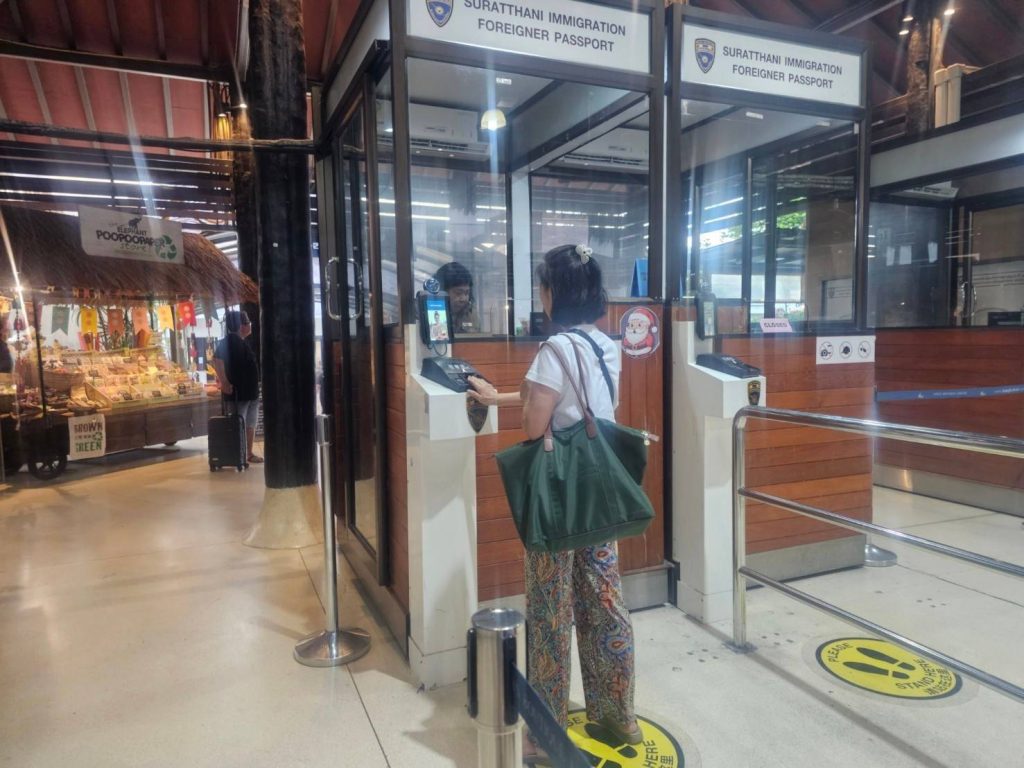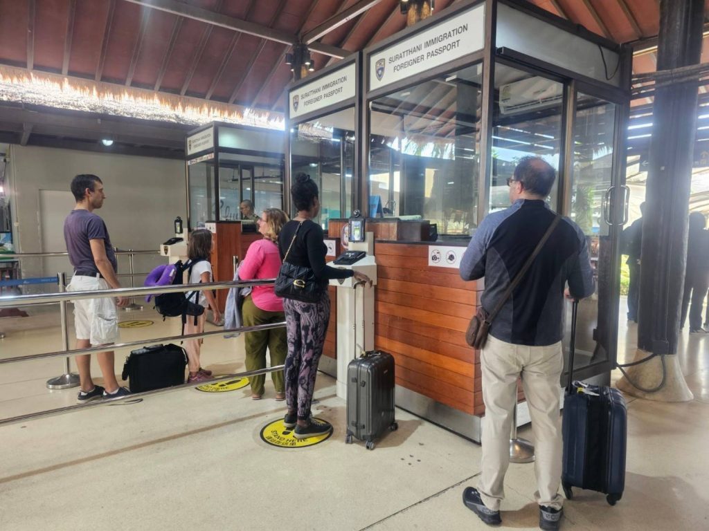วันที่ 12 ม.ค.68 ร.ต.อ.ปิติพงษ์ เสนชู ,ร.ต.อ.หญิง ภาวดี หวานทอง ,ร.ต.อ.หญิง จันทร์จิรา วิถี รอง สว.ตม.จว.สุราษฎร์ธานี พร้อมด้วยเจ้าหน้าที่ ตม.จว. สุราษฎร์ธานี (ทอ.สมุย) ปฏิบัติหน้าที่ตรวจบุุคคลและพาหนะทางอากาศ, Overstay, Visa on arrival พร้อมดูแล ช่วยเหลือ อำนวยความสะดวกและความเรียบร้อยในแถวระหว่างรอเข้าใช้บริการให้กับผู้โดยสารที่เดินทางเข้า-ออก ทางอากาศในเขตพื้นที่รับผิดชอบประจำสนามบินสมุย อ.เกาะสมุย จว.สุราษฎร์ธานี