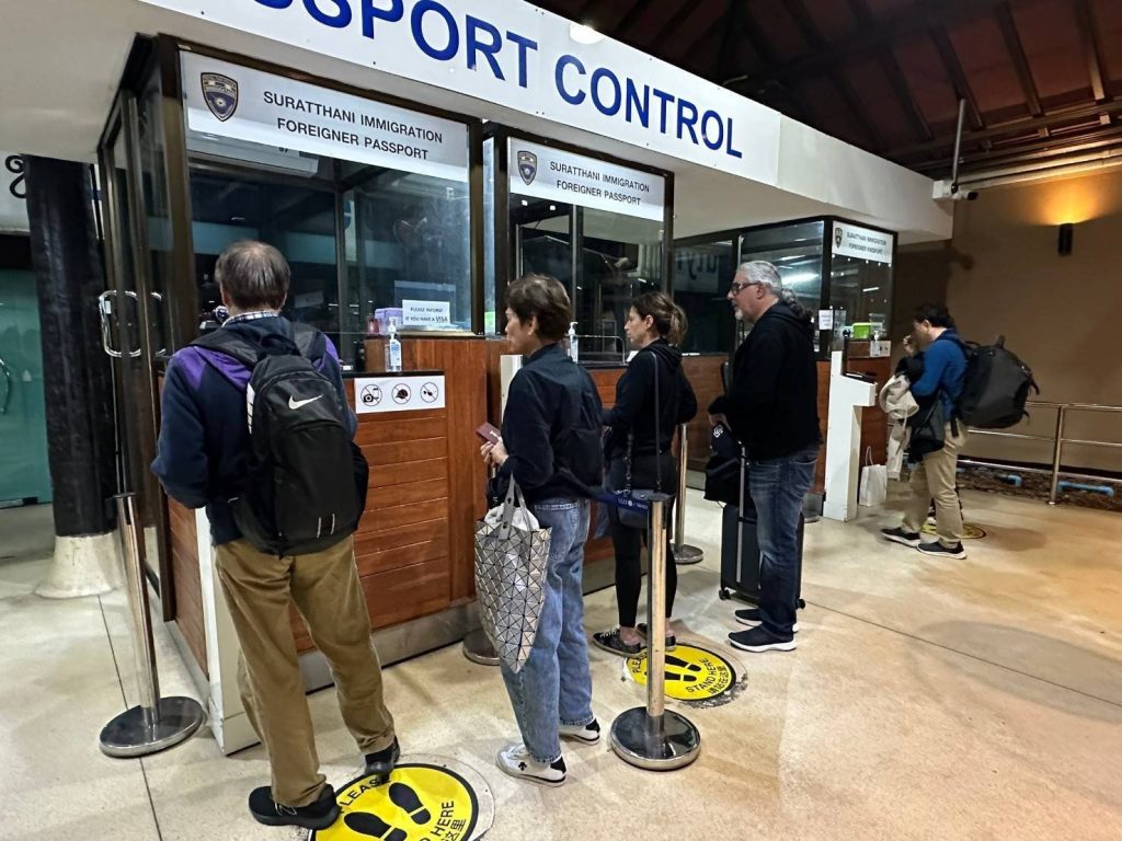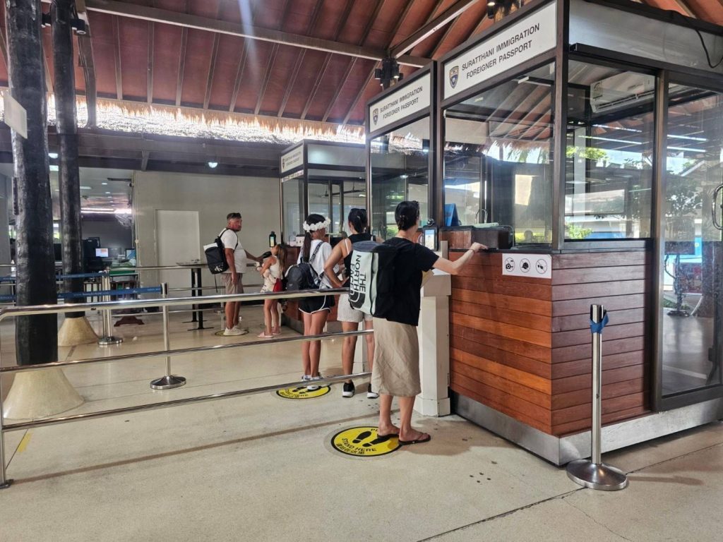 วันที่ 10 ม.ค.68 ร.ต.อ.ปิติพงษ์ เสนชู ,ร.ต.อ.หญิง ภาวดี หวานทอง ,ร.ต.อ.หญิง จันทร์จิรา วิถี รอง สว.ตม.จว.สุราษฎร์ธานี พร้อมด้วยเจ้าหน้าที่ ตม.จว. สุราษฎร์ธานี (ทอ.สมุย) ปฏิบัติหน้าที่ตรวจบุุคคลและพาหนะทางอากาศ, Overstay, Visa on arrival พร้อมดูแล ช่วยเหลือ อำนวยความสะดวกและความเรียบร้อยในแถวระหว่างรอเข้าใช้บริการให้กับผู้โดยสารที่เดินทางเข้า-ออก ทางอากาศในเขตพื้นที่รับผิดชอบประจำสนามบินสมุย อ.เกาะสมุย จว.สุราษฎร์ธานี