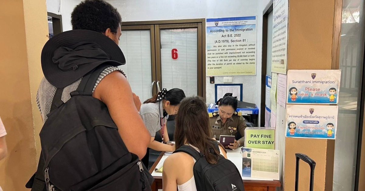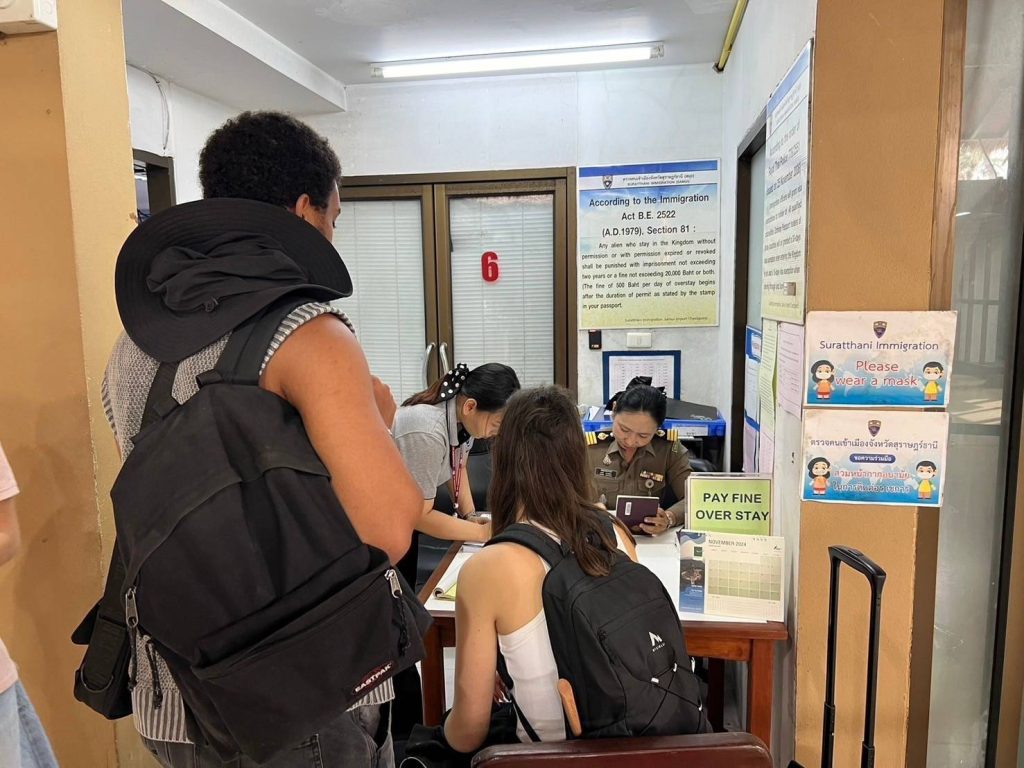 วันที่ 8 ม.ค.68 ร.ต.อ.ปิติพงษ์ เสนชู ,ร.ต.อ.หญิง ภาวดี หวานทอง ,ร.ต.อ.หญิง จันทร์จิรา วิถี รอง สว.ตม.จว.สุราษฎร์ธานี พร้อมด้วยเจ้าหน้าที่ ตม.จว. สุราษฎร์ธานี (ทอ.สมุย) ปฏิบัติหน้าที่ตรวจบุุคคลและพาหนะทางอากาศ, Overstay, Visa on arrival พร้อมดูแล ช่วยเหลือ อำนวยความสะดวกและความเรียบร้อยในแถวระหว่างรอเข้าใช้บริการให้กับผู้โดยสารที่เดินทางเข้า-ออก ทางอากาศในเขตพื้นที่รับผิดชอบประจำสนามบินสมุย อ.เกาะสมุย จว.สุราษฎร์ธานี