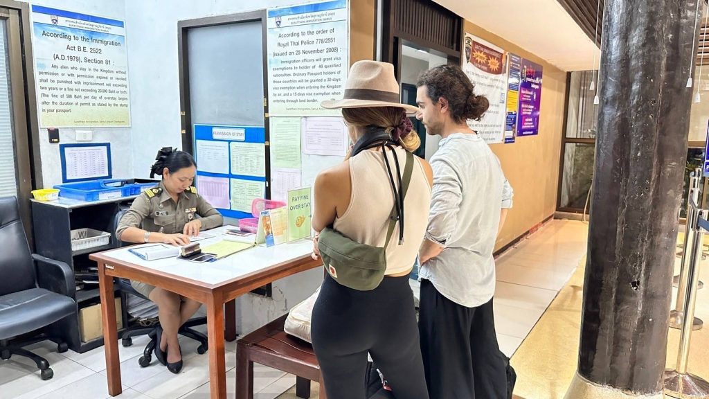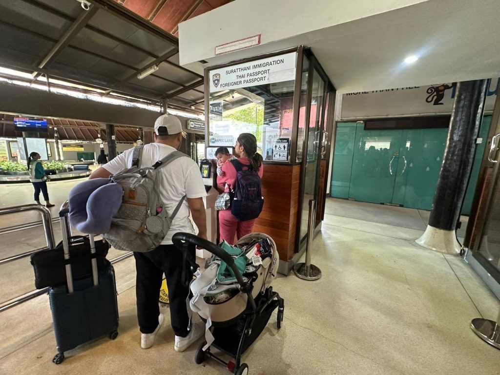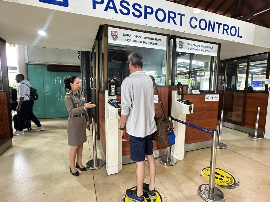 วันที่ 7 ม.ค.68 ร.ต.อ.ปิติพงษ์ เสนชู ,ร.ต.อ.หญิง ภาวดี หวานทอง ,ร.ต.อ.หญิง จันทร์จิรา วิถี รอง สว.ตม.จว.สุราษฎร์ธานี พร้อมด้วยเจ้าหน้าที่ ตม.จว. สุราษฎร์ธานี (ทอ.สมุย) ปฏิบัติหน้าที่ตรวจบุุคคลและพาหนะทางอากาศ, Overstay, Visa on arrival พร้อมดูแล ช่วยเหลือ อำนวยความสะดวกและความเรียบร้อยในแถวระหว่างรอเข้าใช้บริการให้กับผู้โดยสารที่เดินทางเข้า-ออก ทางอากาศในเขตพื้นที่รับผิดชอบประจำสนามบินสมุย อ.เกาะสมุย จว.สุราษฎร์ธานี
