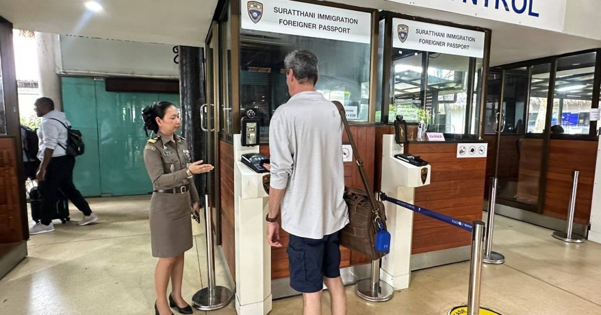 วันที่ 7 ม.ค.68 ร.ต.อ.ปิติพงษ์ เสนชู ,ร.ต.อ.หญิง ภาวดี หวานทอง ,ร.ต.อ.หญิง จันทร์จิรา วิถี รอง สว.ตม.จว.สุราษฎร์ธานี พร้อมด้วยเจ้าหน้าที่ ตม.จว. สุราษฎร์ธานี (ทอ.สมุย) ปฏิบัติหน้าที่ตรวจบุุคคลและพาหนะทางอากาศ, Overstay, Visa on arrival พร้อมดูแล ช่วยเหลือ อำนวยความสะดวกและความเรียบร้อยในแถวระหว่างรอเข้าใช้บริการให้กับผู้โดยสารที่เดินทางเข้า-ออก ทางอากาศในเขตพื้นที่รับผิดชอบประจำสนามบินสมุย อ.เกาะสมุย จว.สุราษฎร์ธานี