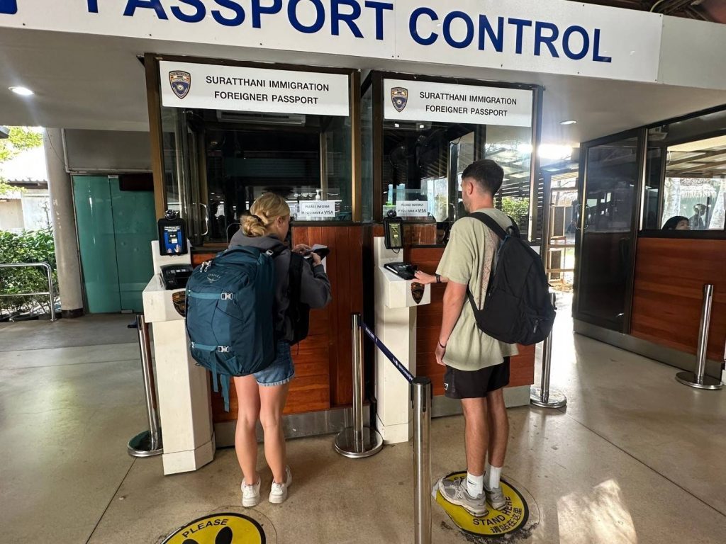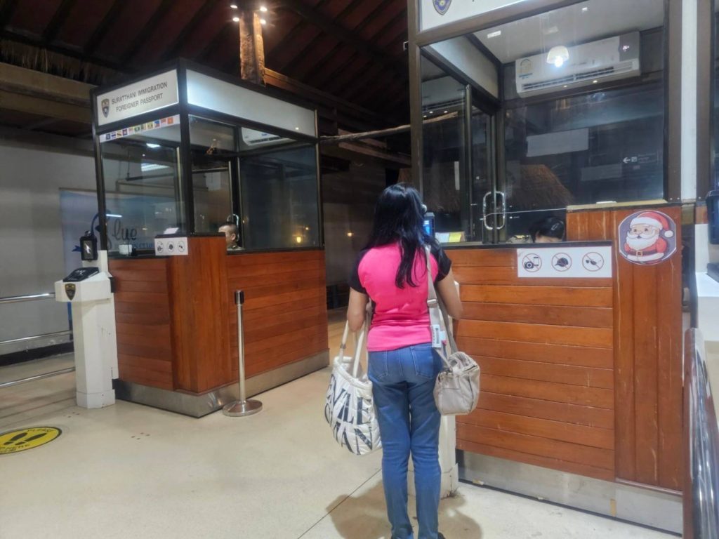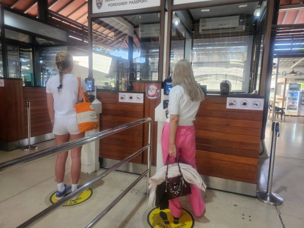 วันที่ 29 ธ.ค.67 ร.ต.อ.ปิติพงษ์ เสนชู ,ร.ต.อ.หญิง ภาวดี หวานทอง ,ร.ต.อ.หญิง จันทร์จิรา วิถี รอง สว.ตม.จว.สุราษฎร์ธานี พร้อมด้วยเจ้าหน้าที่ ตม.จว. สุราษฎร์ธานี (ทอ.สมุย) ปฏิบัติหน้าที่ตรวจบุุคคลและพาหนะทางอากาศ, Overstay, Visa on arrival พร้อมดูแล ช่วยเหลือ อำนวยความสะดวกและความเรียบร้อยในแถวระหว่างรอเข้าใช้บริการให้กับผู้โดยสารที่เดินทางเข้า-ออก ทางอากาศในเขตพื้นที่รับผิดชอบประจำสนามบินสมุย อ.เกาะสมุย จว.สุราษฎร์ธานี