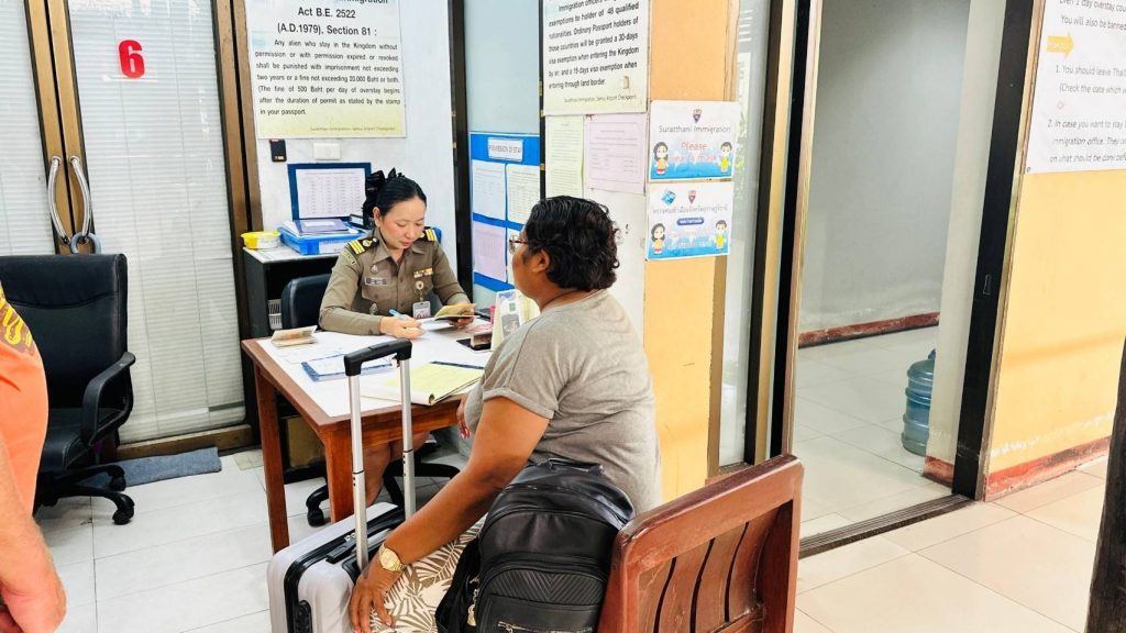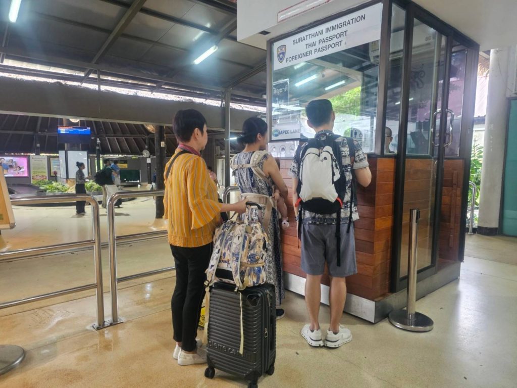 วันที่ 24 ธ.ค.67 ร.ต.อ.ปิติพงษ์ เสนชู ,ร.ต.อ.หญิง ภาวดี หวานทอง ,ร.ต.อ.หญิง จันทร์จิรา วิถี รอง สว.ตม.จว.สุราษฎร์ธานี พร้อมด้วยเจ้าหน้าที่ ตม.จว. สุราษฎร์ธานี (ทอ.สมุย) ปฏิบัติหน้าที่ตรวจบุุคคลและพาหนะทางอากาศ, Overstay, Visa on arrival พร้อมดูแล ช่วยเหลือ อำนวยความสะดวกและความเรียบร้อยในแถวระหว่างรอเข้าใช้บริการให้กับผู้โดยสารที่เดินทางเข้า-ออก ทางอากาศในเขตพื้นที่รับผิดชอบประจำสนามบินสมุย อ.เกาะสมุย จว.สุราษฎร์ธานี