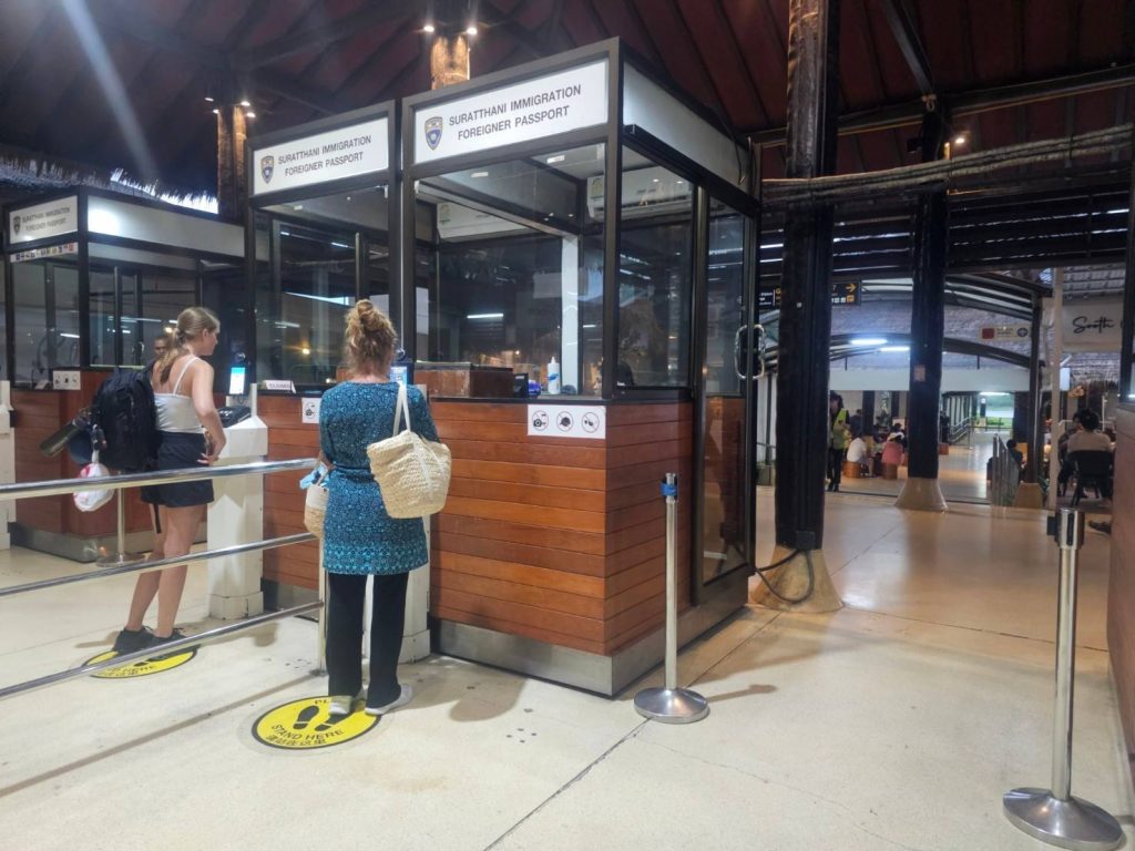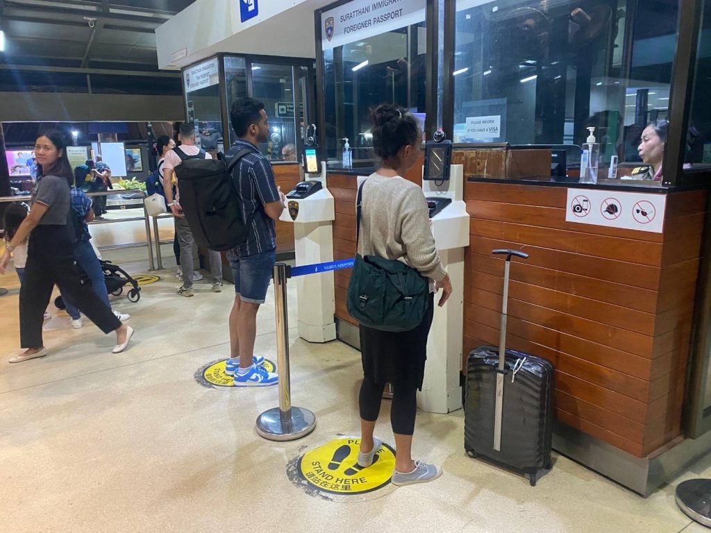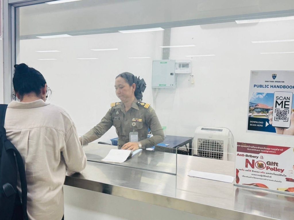 วันที่ 14 ธ.ค.67 ร.ต.อ.ปิติพงษ์ เสนชู ,ร.ต.อ.หญิง ภาวดี หวานทอง ,ร.ต.อ.หญิง จันทร์จิรา วิถี รอง สว.ตม.จว.สุราษฎร์ธานี พร้อมด้วยเจ้าหน้าที่ ตม.จว. สุราษฎร์ธานี (ทอ.สมุย) ปฏิบัติหน้าที่ตรวจบุุคคลและพาหนะทางอากาศ, Overstay, Visa on arrival พร้อมดูแล ช่วยเหลือ อำนวยความสะดวกและความเรียบร้อยในแถวระหว่างรอเข้าใช้บริการให้กับผู้โดยสารที่เดินทางเข้า-ออก ทางอากาศในเขตพื้นที่รับผิดชอบประจำสนามบินสมุย อ.เกาะสมุย จว.สุราษฎร์ธานี