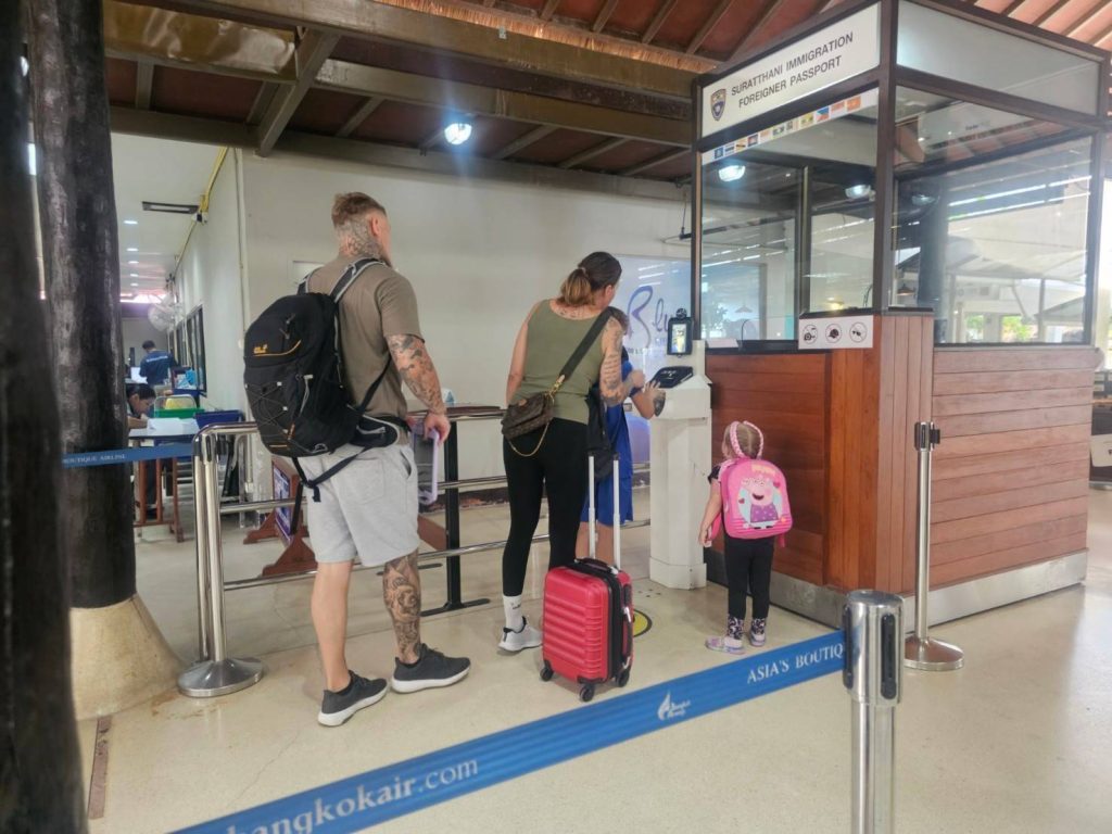 วันที่ 13 ธ.ค.67 ร.ต.อ.ปิติพงษ์ เสนชู ,ร.ต.อ.หญิง ภาวดี หวานทอง ,ร.ต.อ.หญิง จันทร์จิรา วิถี รอง สว.ตม.จว.สุราษฎร์ธานี พร้อมด้วยเจ้าหน้าที่ ตม.จว. สุราษฎร์ธานี (ทอ.สมุย) ปฏิบัติหน้าที่ตรวจบุุคคลและพาหนะทางอากาศ, Overstay, Visa on arrival พร้อมดูแล ช่วยเหลือ อำนวยความสะดวกและความเรียบร้อยในแถวระหว่างรอเข้าใช้บริการให้กับผู้โดยสารที่เดินทางเข้า-ออก ทางอากาศในเขตพื้นที่รับผิดชอบประจำสนามบินสมุย อ.เกาะสมุย จว.สุราษฎร์ธานี