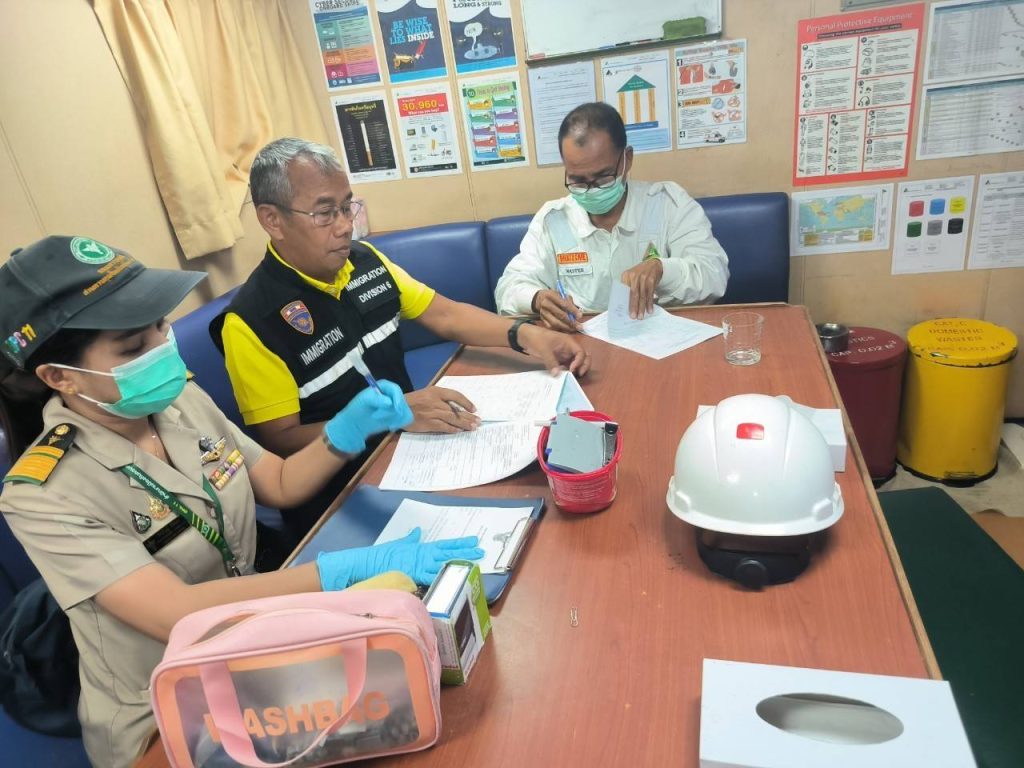 วันที่ 12 ก.พ.68 ร.ต.อ.หญิง ธมนวรรณ มณี รอง สว.ตม.จว.สุราษฎร์ธานี ,ร.ต.ท.ผดุงศักดิ์ แยบกระโทก รอง สว (อก.) ตม.จว.สุราษฎร์ธานี ,ด.ต.หญิง พิมประภา จันทร์ขาว ปฏิบัติหน้าที่ตรวจบุุคคลและพาหนะทางน้ำ ในเขตพื้นที่รับผิดชอบ ประจำท่าเรืออ่าวบ้านดอน อ.เมือง จว.สุราษฎร์ธานี