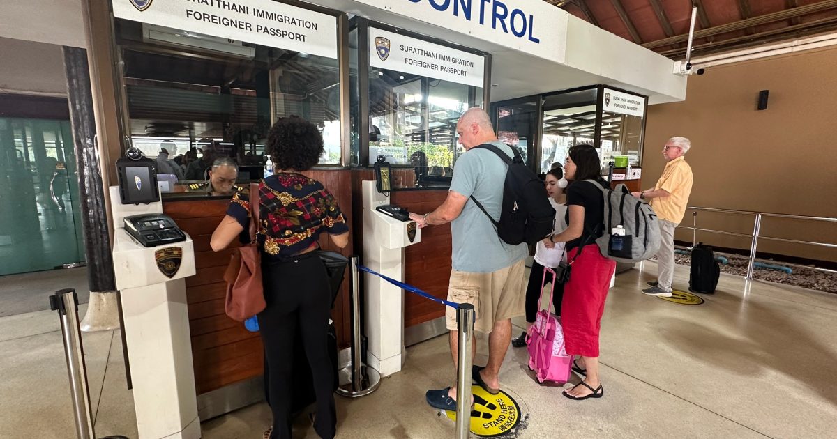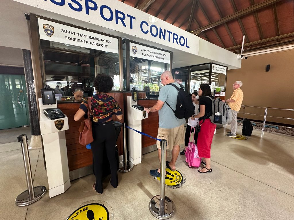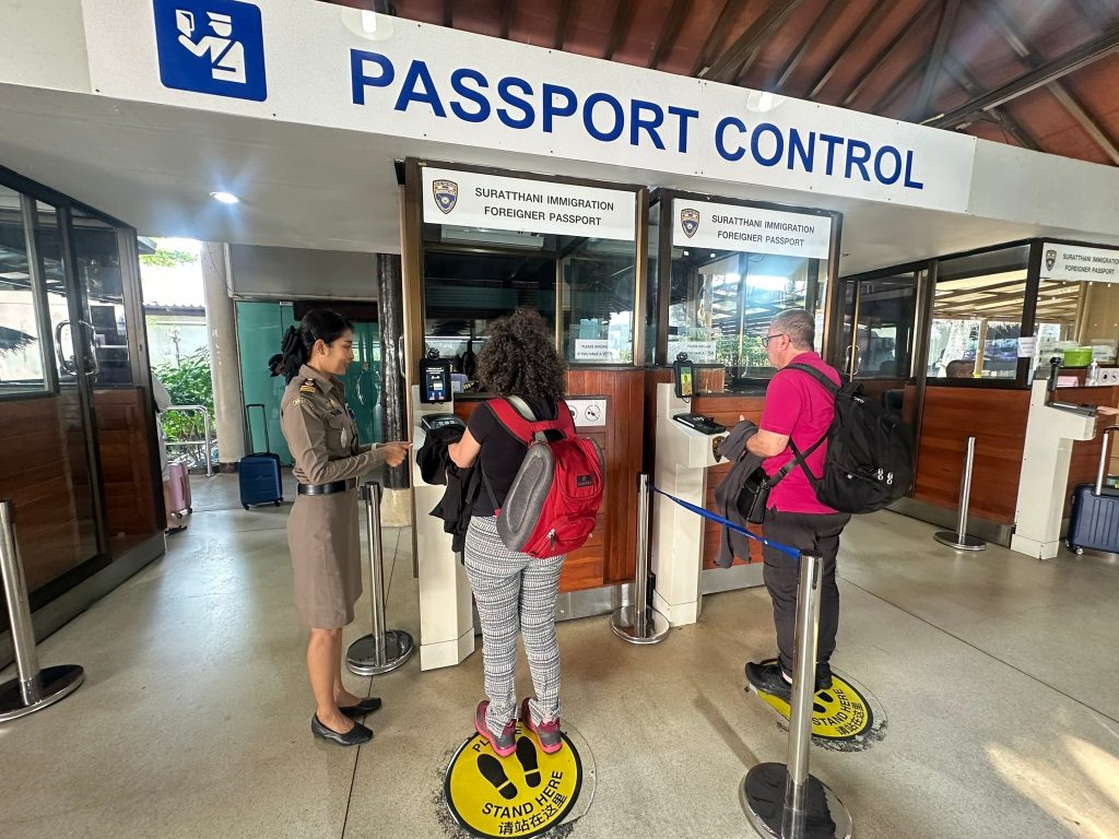 วันที่ 2 ก.พ.68 ร.ต.อ.ปิติพงษ์ เสนชู รอง สว.ตม.จว.สุราษฎร์ธานี ,ร.ต.อ.หญิง ภาวดี หวานทอง ,ร.ต.อ.หญิง จันทร์จิรา วิถี พร้อมด้วยเจ้าหน้าที่ ตม.จว.สุราษฎร์ธานี (ทอ.สมุย) ปฏิบัติหน้าที่ตรวจบุุคคลและพาหนะทางอากาศ, Overstay, Visa on arrival พร้อมดูแล ช่วยเหลือ อำนวยความสะดวกและความเรียบร้อยในแถวระหว่างรอเข้าใช้บริการให้กับผู้โดยสารที่เดินทางเข้า-ออก ทางอากาศในเขตพื้นที่รับผิดชอบประจำสนามบินสมุย อ.เกาะสมุย จว.สุราษฎร์ธานี