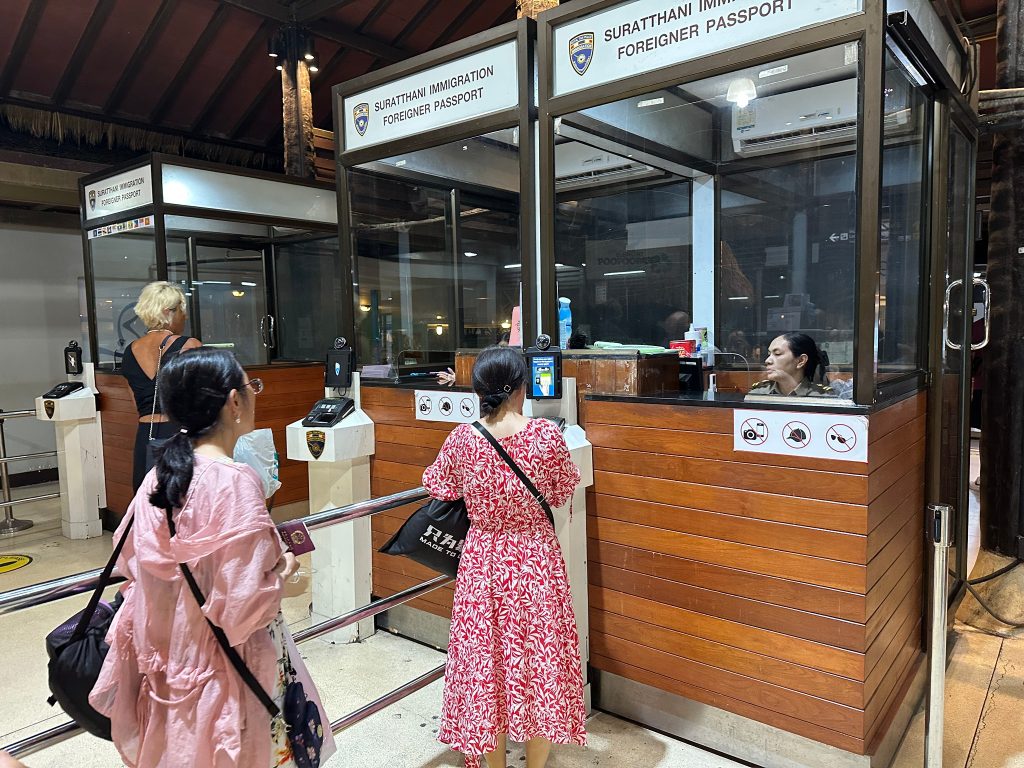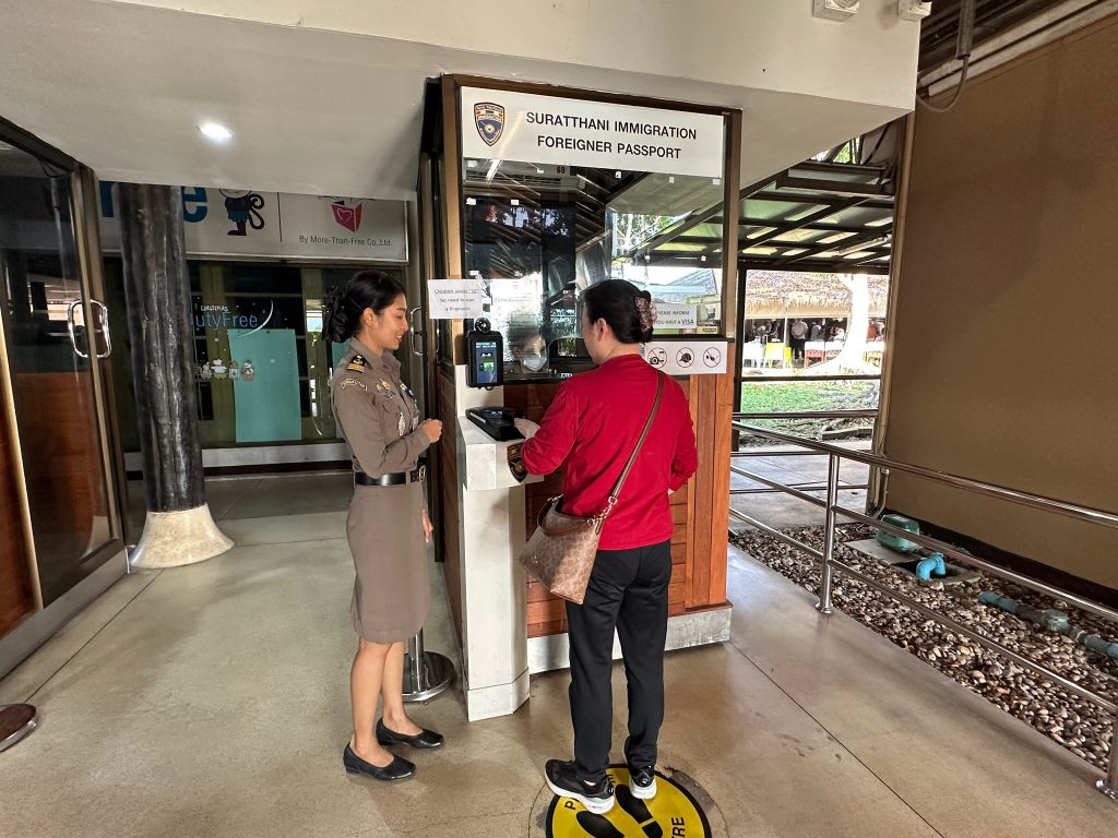 วันที่ 17 ก.พ.68 ร.ต.อ.ปิติพงษ์ เสนชู รอง สว.ตม.จว.สุราษฎร์ธานี ,ร.ต.อ.หญิง ภาวดี หวานทอง ,ร.ต.อ.หญิง จันทร์จิรา วิถี พร้อมด้วยเจ้าหน้าที่ ตม.จว.สุราษฎร์ธานี (ทอ.สมุย) ปฏิบัติหน้าที่ตรวจบุคคลและพาหนะทางอากาศ, Overstay, Visa on arrival พร้อมดูแล ช่วยเหลือ อำนวยความสะดวกและความเรียบร้อยในแถวระหว่างรอเข้าใช้บริการให้กับผู้โดยสารที่เดินทางเข้า-ออก ทางอากาศในเขตพื้นที่รับผิดชอบประจำสนามบินสมุย อ.เกาะสมุย จว.สุราษฎร์ธานี