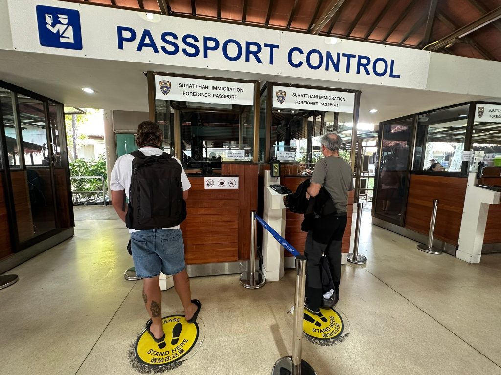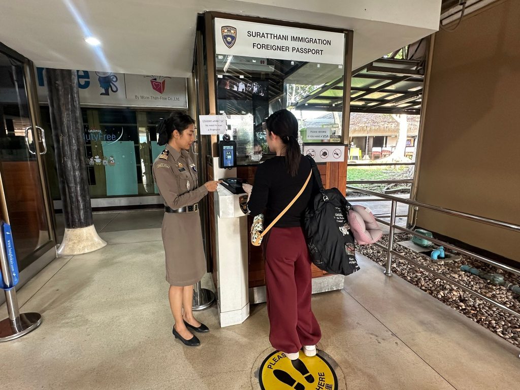 วันที่ 14 ก.พ.68 ร.ต.อ.ปิติพงษ์ เสนชู รอง สว.ตม.จว.สุราษฎร์ธานี ,ร.ต.อ.หญิง ภาวดี หวานทอง ,ร.ต.อ.หญิง จันทร์จิรา วิถี พร้อมด้วยเจ้าหน้าที่ ตม.จว.สุราษฎร์ธานี (ทอ.สมุย) ปฏิบัติหน้าที่ตรวจบุคคลและพาหนะทางอากาศ, Overstay, Visa on arrival พร้อมดูแล ช่วยเหลือ อำนวยความสะดวกและความเรียบร้อยในแถวระหว่างรอเข้าใช้บริการให้กับผู้โดยสารที่เดินทางเข้า-ออก ทางอากาศในเขตพื้นที่รับผิดชอบประจำสนามบินสมุย อ.เกาะสมุย จว.สุราษฎร์ธานี