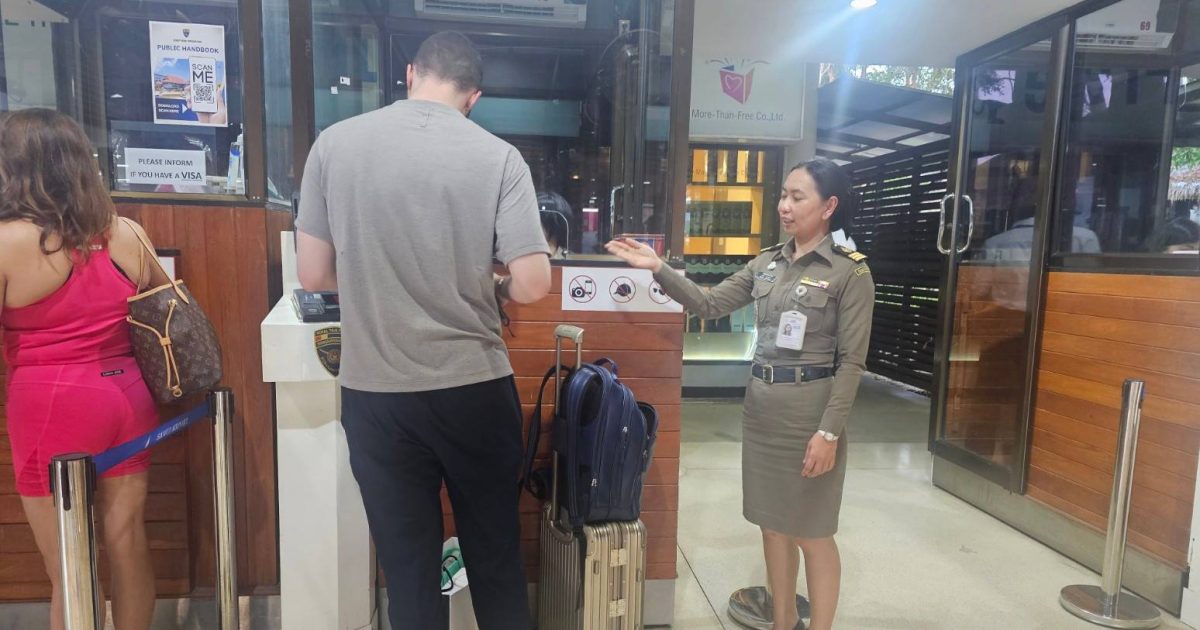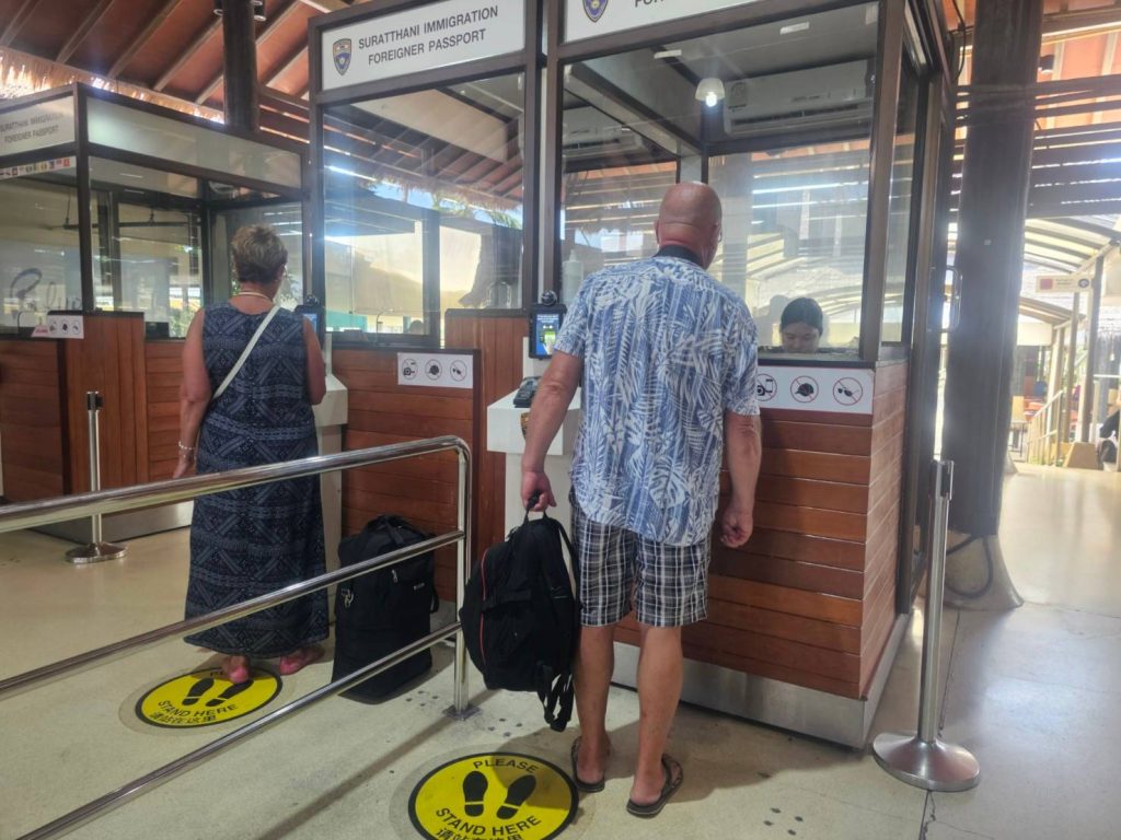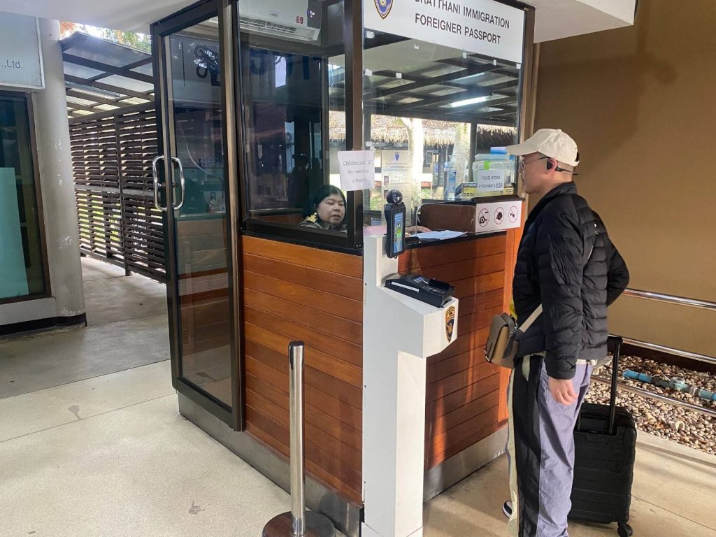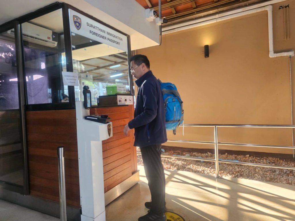 วันที่ 22 ก.พ.68 ร.ต.อ.ปิติพงษ์ เสนชู ,ร.ต.อ.หญิง ภาวดี หวานทอง ,ร.ต.อ.หญิง จันทร์จิรา วิถี รอง สว.ตม. จว.สุราษฎร์ธานี พร้อมด้วยเจ้าหน้าที่ ตม.จว. สุราษฎร์ธานี (ทอ.สมุย) ปฏิบัติหน้าที่ตรวจบุุคคลและพาหนะทางอากาศ, Overstay, Visa on arrival พร้อมดูแล ช่วยเหลือ อำนวยความสะดวกและความเรียบร้อยในแถวระหว่างรอเข้าใช้บริการให้กับผู้โดยสารที่เดินทางเข้า-ออก ทางอากาศในเขตพื้นที่รับผิดชอบประจำสนามบินสมุย อ.เกาะสมุย จว.สุราษฎร์ธานี