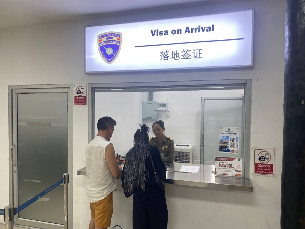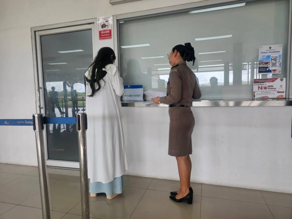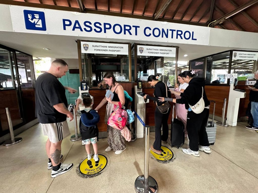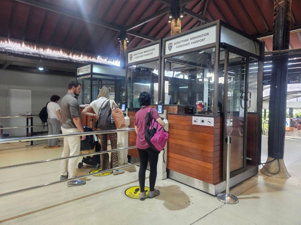 วันที่ 20 ก.พ.68 ร.ต.อ.ปิติพงษ์ เสนชู ,ร.ต.อ.หญิง ภาวดี หวานทอง ,ร.ต.อ.หญิง จันทร์จิรา วิถี รอง สว.ตม. จว.สุราษฎร์ธานี พร้อมด้วยเจ้าหน้าที่ ตม.จว. สุราษฎร์ธานี (ทอ.สมุย) ปฏิบัติหน้าที่ตรวจบุุคคลและพาหนะทางอากาศ, Overstay, Visa on arrival พร้อมดูแล ช่วยเหลือ อำนวยความสะดวกและความเรียบร้อยในแถวระหว่างรอเข้าใช้บริการให้กับผู้โดยสารที่เดินทางเข้า-ออก ทางอากาศในเขตพื้นที่รับผิดชอบประจำสนามบินสมุย อ.เกาะสมุย จว.สุราษฎร์ธานี