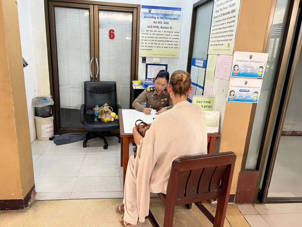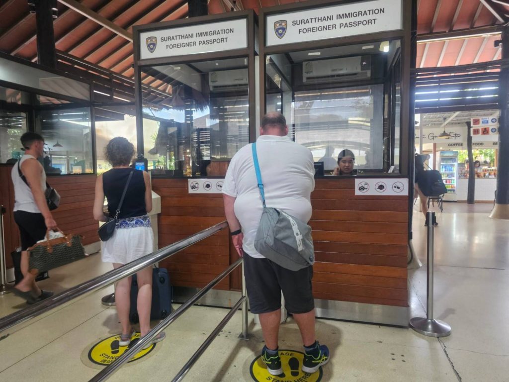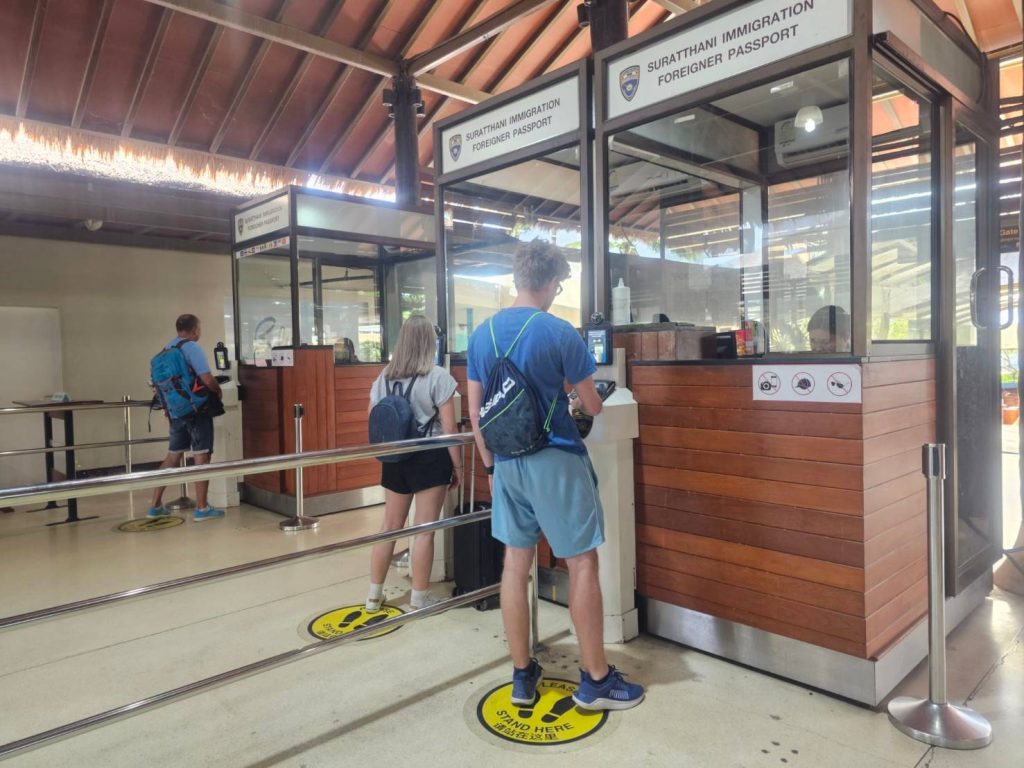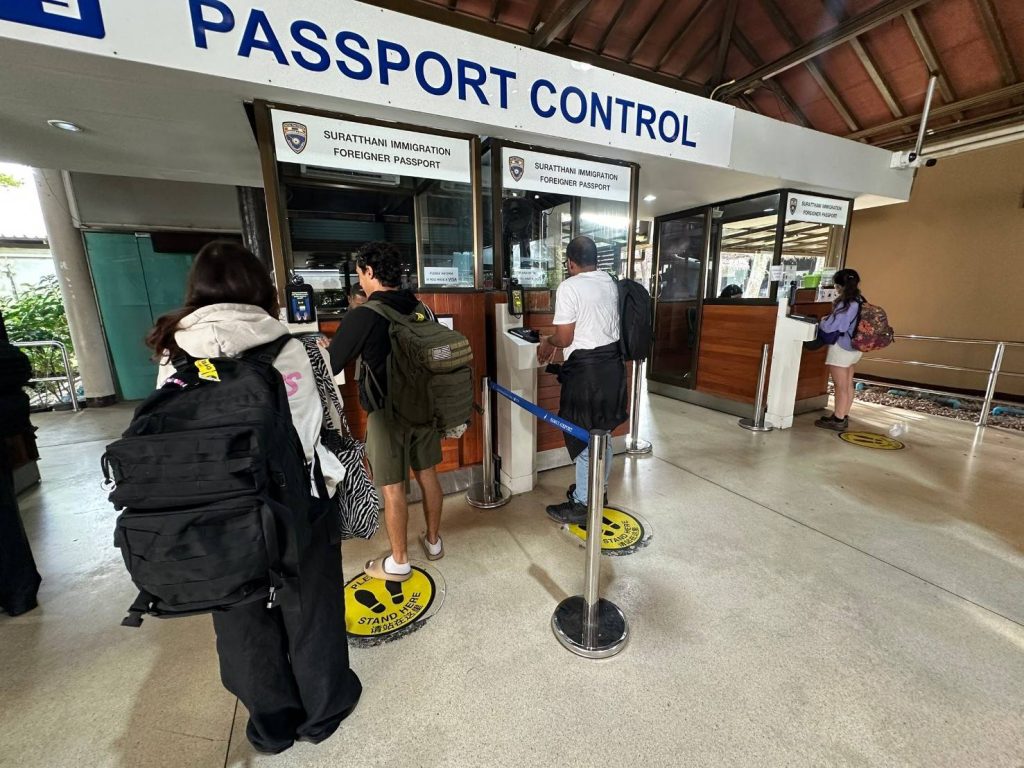 วันที่ 18 ก.พ.68 ร.ต.อ.ปิติพงษ์ เสนชู ,ร.ต.อ.หญิง ภาวดี หวานทอง ,ร.ต.อ.หญิง จันทร์จิรา วิถี รอง สว.ตม. จว.สุราษฎร์ธานี พร้อมด้วยเจ้าหน้าที่ ตม.จว. สุราษฎร์ธานี (ทอ.สมุย) ปฏิบัติหน้าที่ตรวจบุุคคลและพาหนะทางอากาศ, Overstay, Visa on arrival พร้อมดูแล ช่วยเหลือ อำนวยความสะดวกและความเรียบร้อยในแถวระหว่างรอเข้าใช้บริการให้กับผู้โดยสารที่เดินทางเข้า-ออก ทางอากาศในเขตพื้นที่รับผิดชอบประจำสนามบินสมุย อ.เกาะสมุย จว.สุราษฎร์ธานี