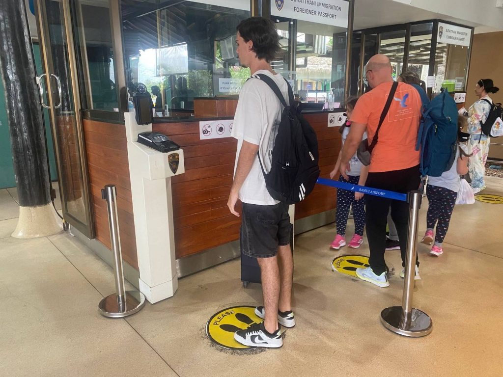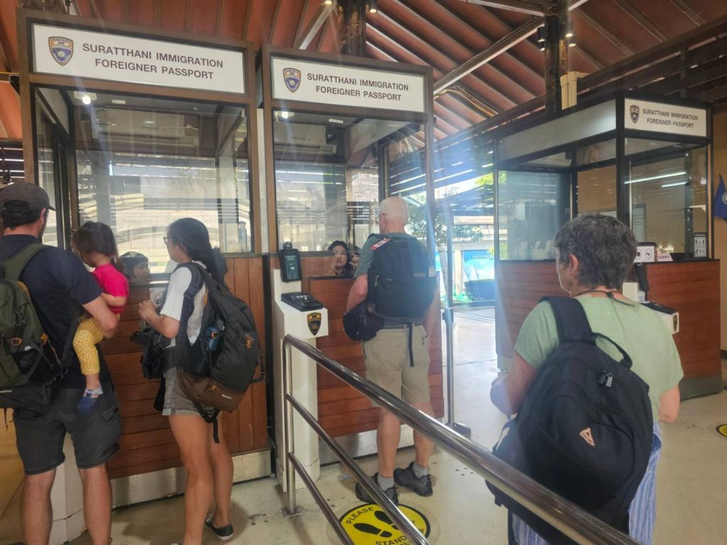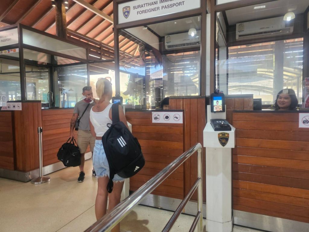 วันที่ 7 ก.พ.68 ร.ต.อ.ปิติพงษ์ เสนชู ,ร.ต.อ.หญิง ภาวดี หวานทอง ,ร.ต.อ.หญิง จันทร์จิรา วิถี รอง สว.ตม. จว.สุราษฎร์ธานี พร้อมด้วยเจ้าหน้าที่ ตม.จว. สุราษฎร์ธานี (ทอ.สมุย) ปฏิบัติหน้าที่ตรวจบุุคคลและพาหนะทางอากาศ, Overstay, Visa on arrival พร้อมดูแล ช่วยเหลือ อำนวยความสะดวกและความเรียบร้อยในแถวระหว่างรอเข้าใช้บริการให้กับผู้โดยสารที่เดินทางเข้า-ออก ทางอากาศในเขตพื้นที่รับผิดชอบประจำสนามบินสมุย อ.เกาะสมุย จว.สุราษฎร์ธานี