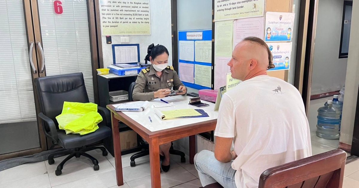 วันที่ 6 ก.พ.68 ร.ต.อ.ปิติพงษ์ เสนชู ,ร.ต.อ.หญิง ภาวดี หวานทอง ,ร.ต.อ.หญิง จันทร์จิรา วิถี รอง สว.ตม. จว.สุราษฎร์ธานี พร้อมด้วยเจ้าหน้าที่ ตม.จว. สุราษฎร์ธานี (ทอ.สมุย) ปฏิบัติหน้าที่ตรวจบุุคคลและพาหนะทางอากาศ, Overstay, Visa on arrival พร้อมดูแล ช่วยเหลือ อำนวยความสะดวกและความเรียบร้อยในแถวระหว่างรอเข้าใช้บริการให้กับผู้โดยสารที่เดินทางเข้า-ออก ทางอากาศในเขตพื้นที่รับผิดชอบประจำสนามบินสมุย อ.เกาะสมุย จว.สุราษฎร์ธานี